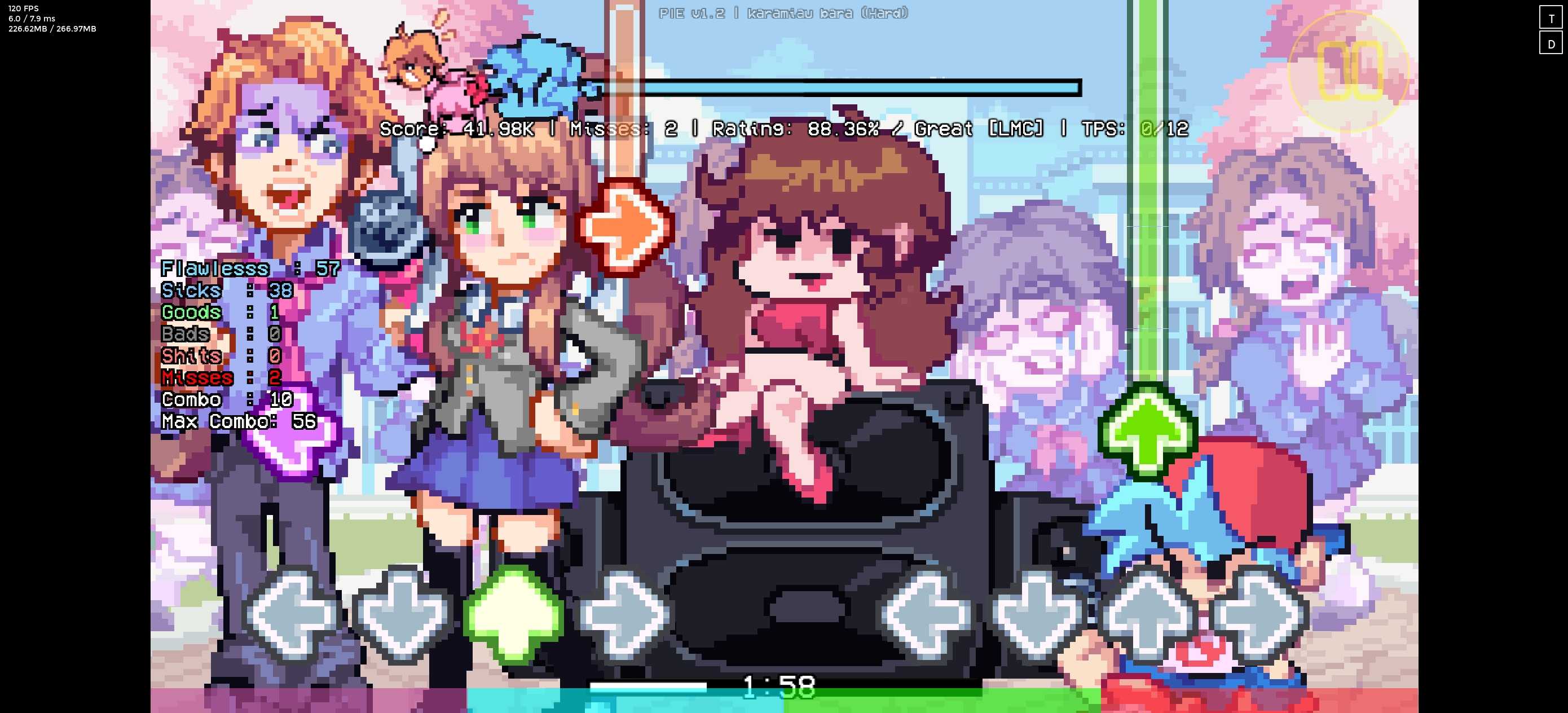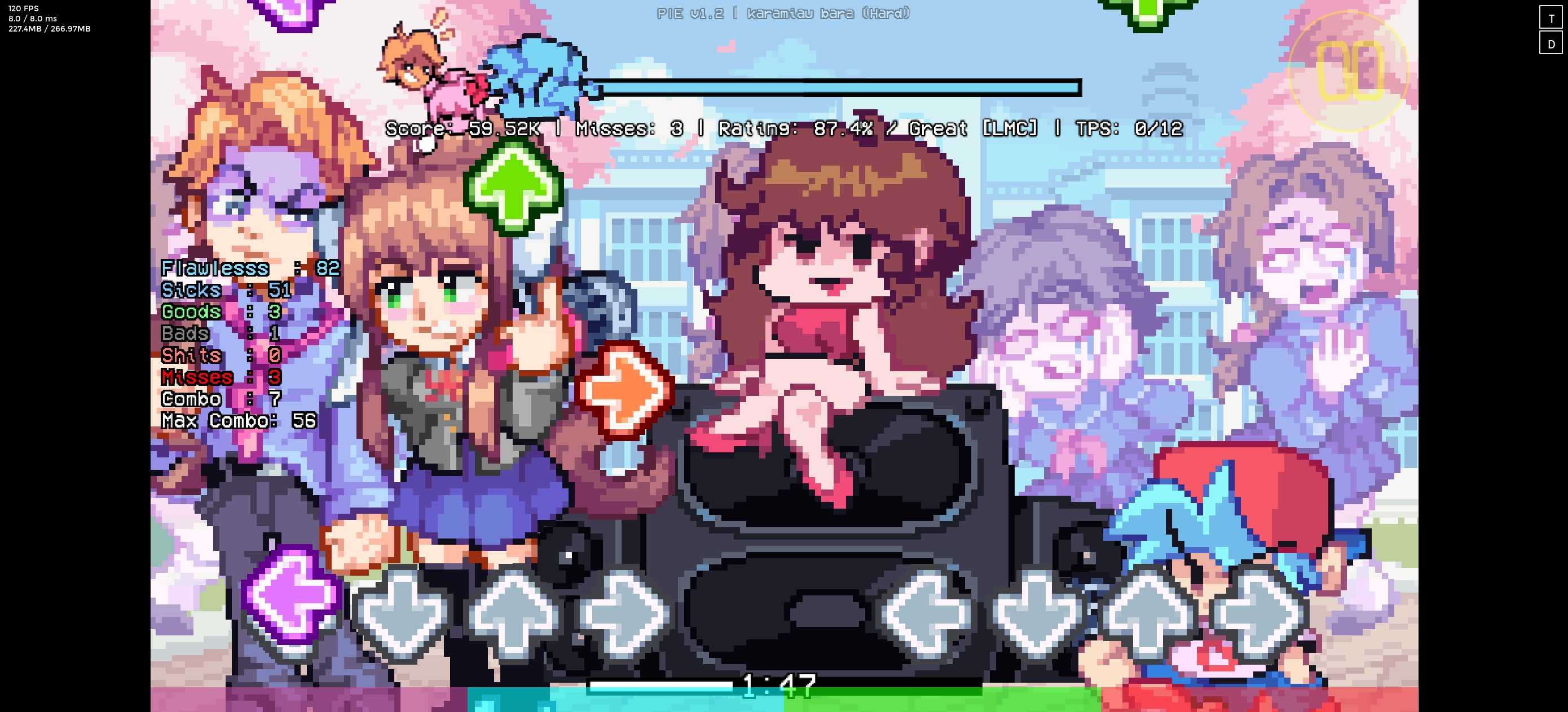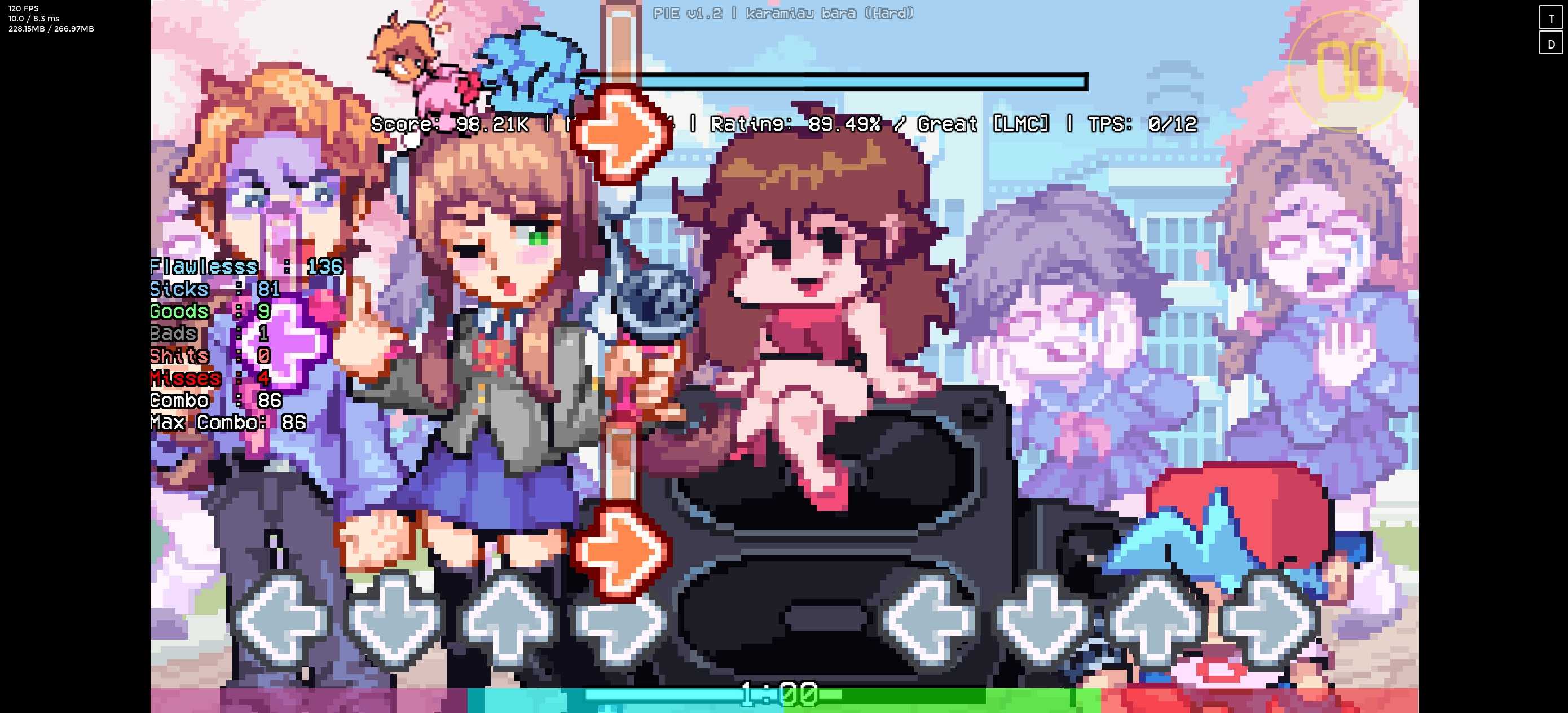 曲目较快,漏掉箭头会使角色无声音只有bf继续开始唱才会有音效
