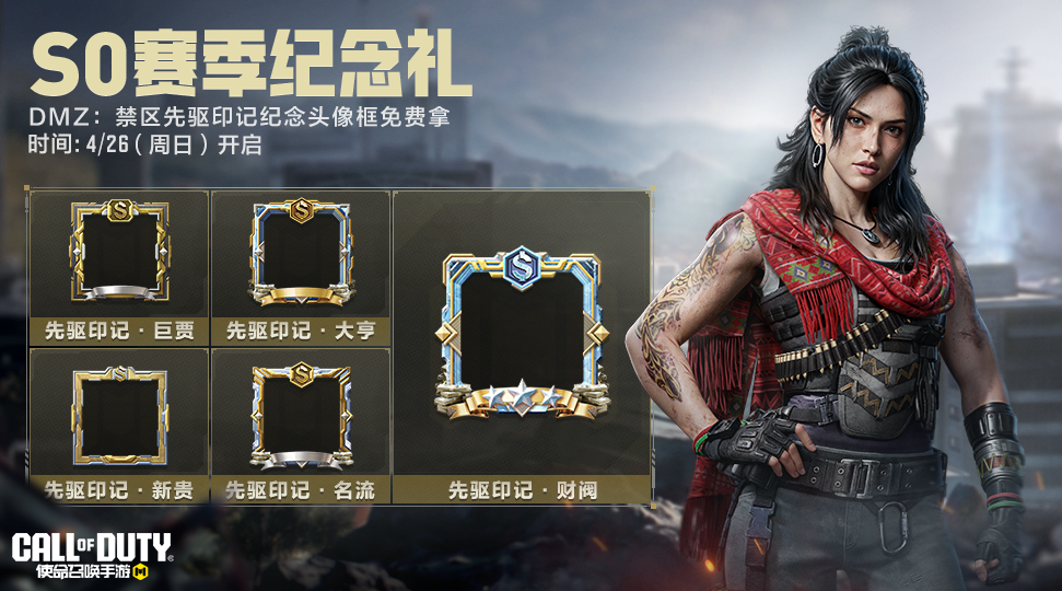 4月26日(本周日),S0赛季纪念礼同步上线!根据S0赛季在DMZ: 禁区的累计资产,即可领取专属头像框,老玩家专属福利回馈,纪念你的S0征程!