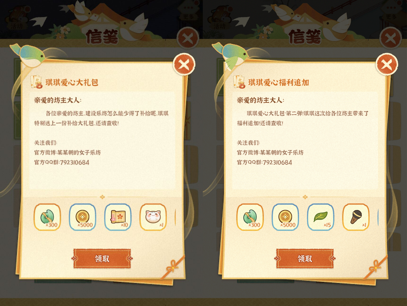想必刚刚进入某某朝世界的坊主们,都需要许多资源搭建乐坊~琪琪为此准备了“开张大礼包”,助力各位坊主成功踏上成团之路!话不多说,让我们进入正题!ଘ(੭ˊ ᵕˋ )੭
