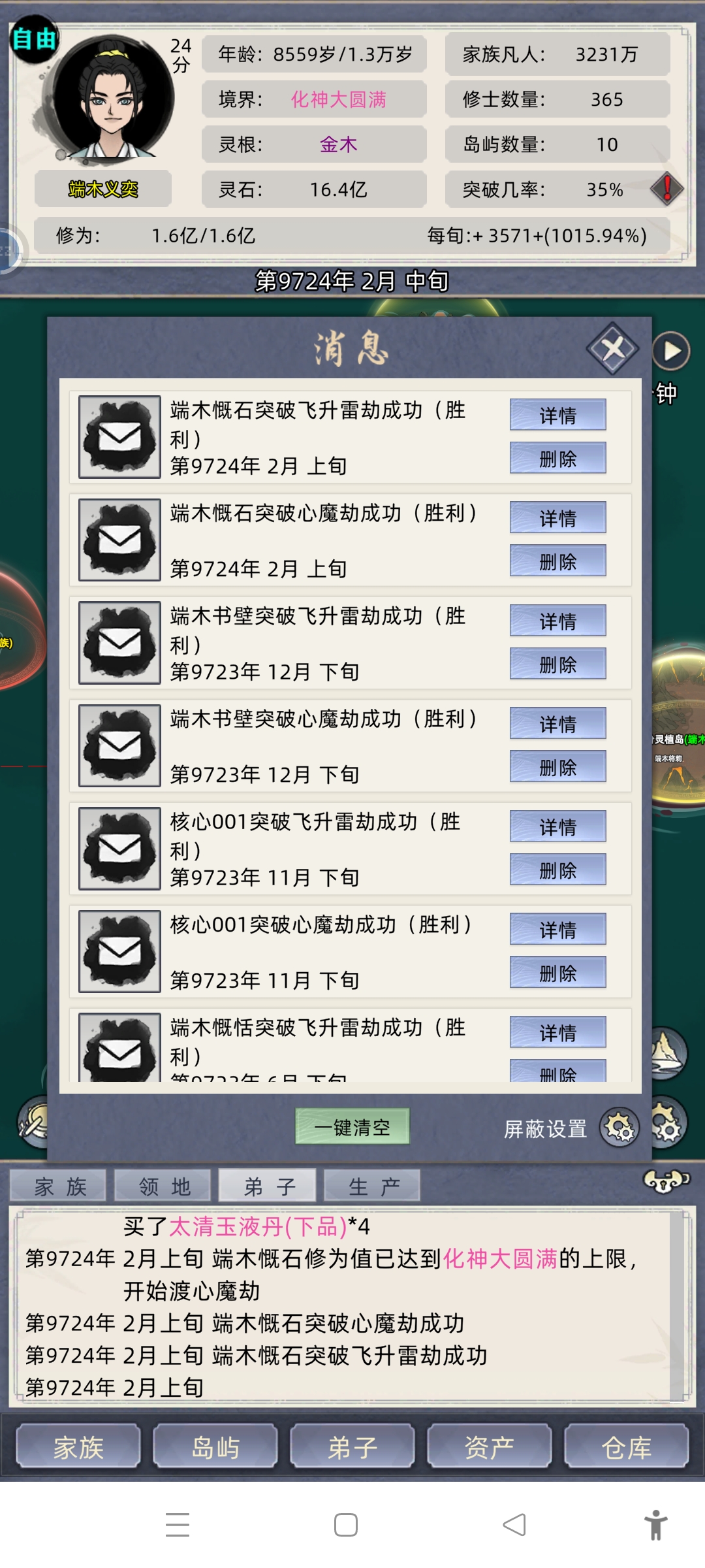 修仙家族模拟器老祖飞升后不给七阶功法,直接走量