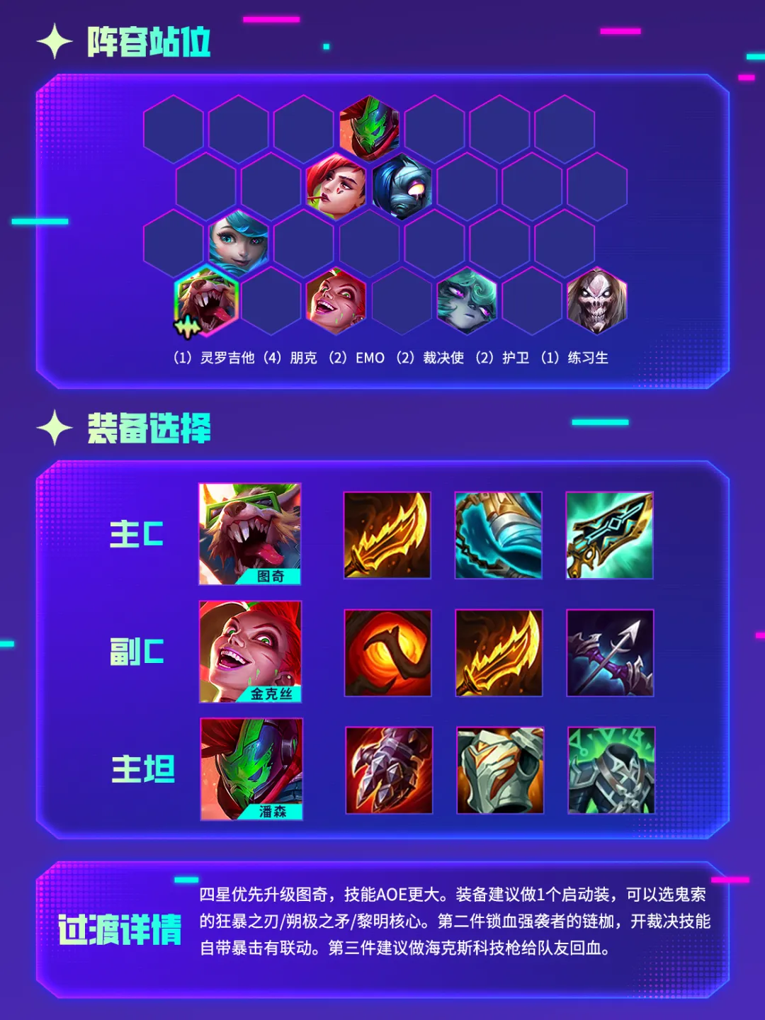 不知道上次金宝儿给大家推荐的【强音对决】赛季的阵容,不知道大家实战体验如何呢?
