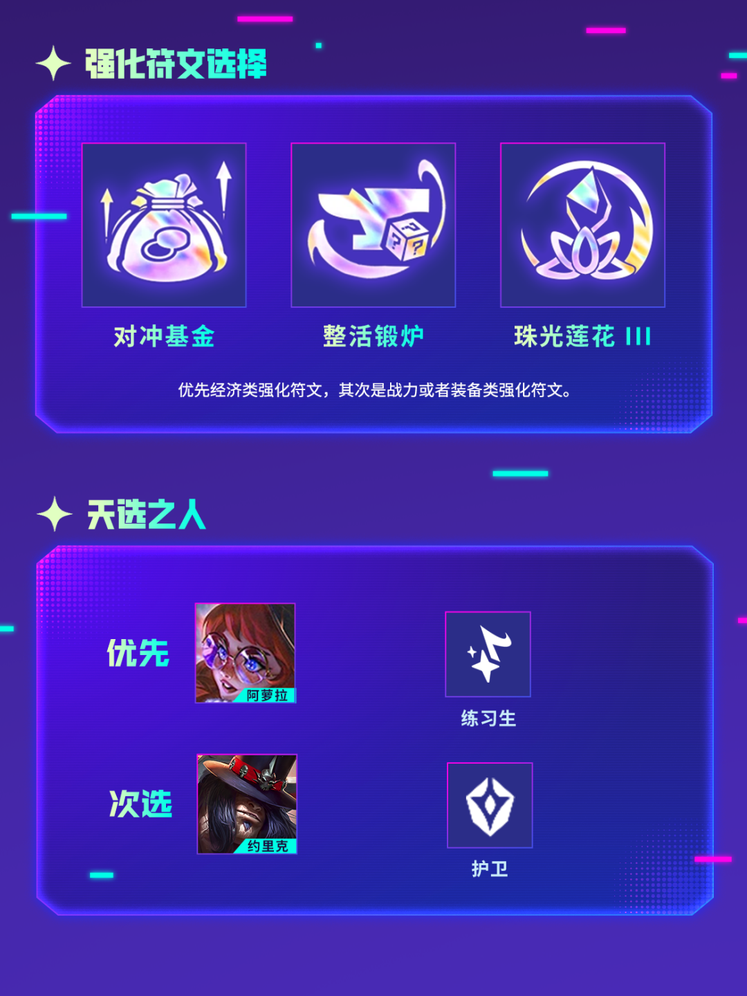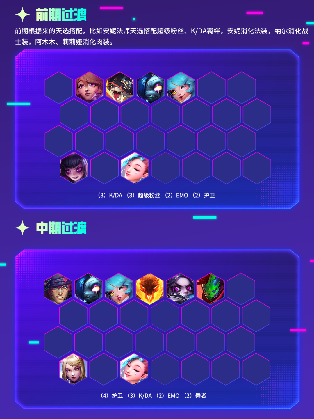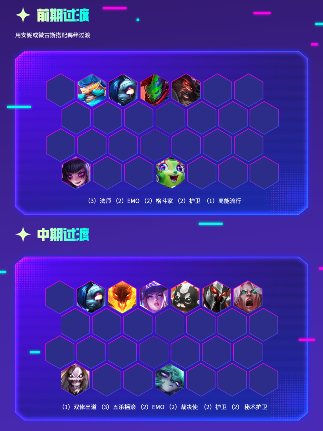 金宝儿特意为弈士们挑选了几套适用于【强音对决】赛季的阵容供大家选择~让弈士们可以在假期期间狠狠上分!
