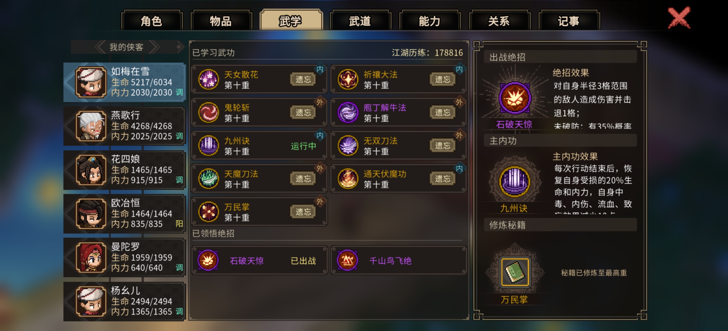 下面是武道,记得结合武学点,前面几乎没研究,直到遇到“蔡元常”