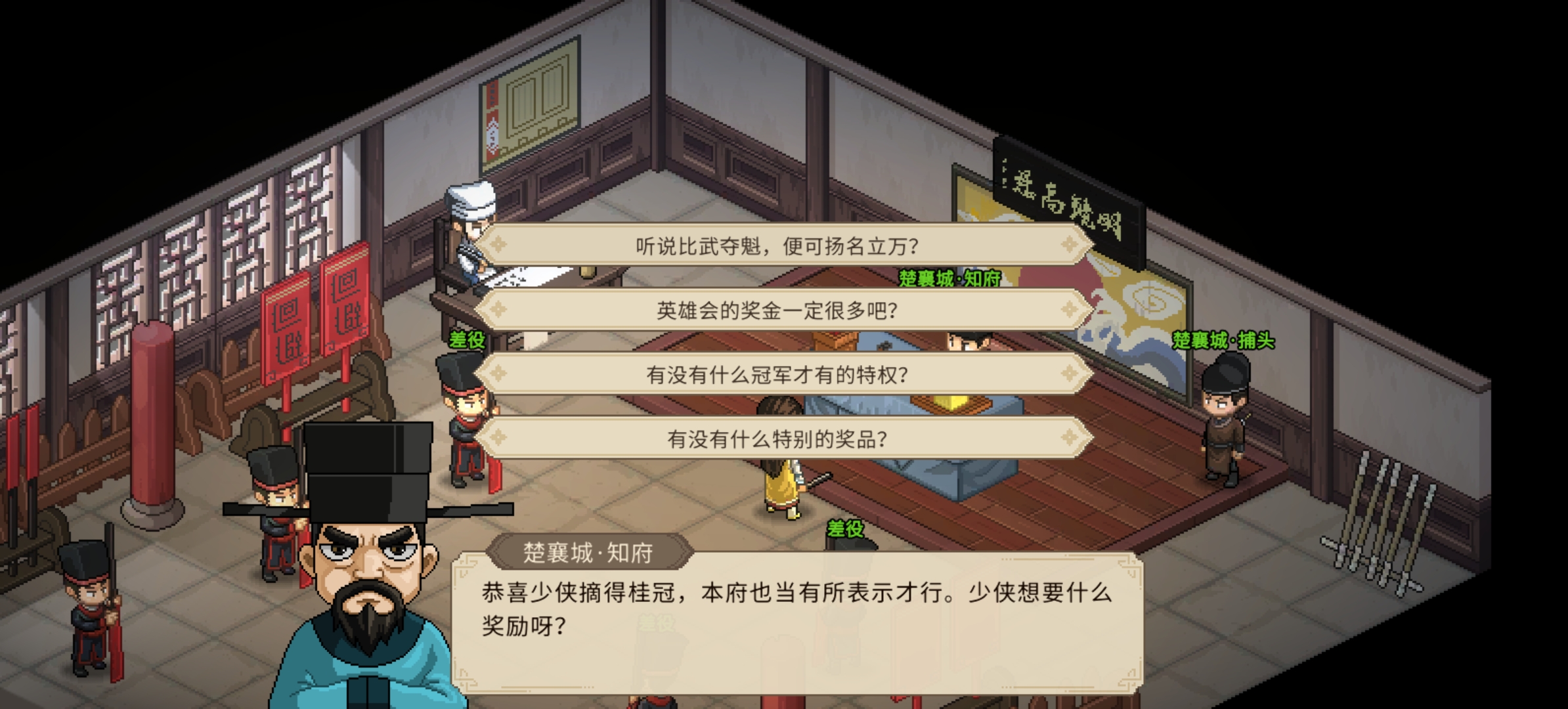 打富二代拿五贯启动资金——磕头十次拿剑——去武馆升到35级,加点选择分摊伤害——衙门比试第一选择要声望——大地图打挑战者收到珠光宝气进入资格