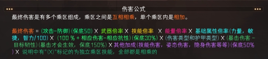 注意公示里的其他加成(技能伤害,姿态伤害,隐身伤害等等),括号里的伤害都是按照相加计算的,也就是他们所说的火锅区。好像是这样哈,我也拿不准,因为我也不去细研究细计算。