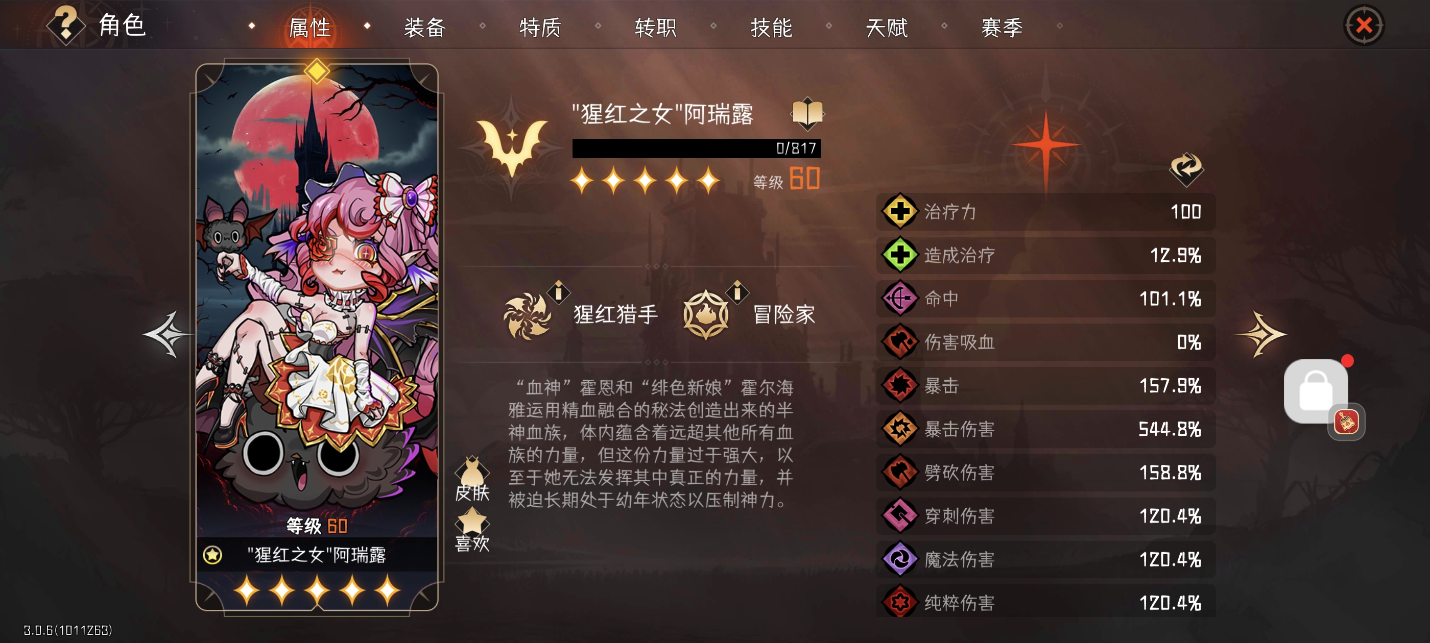 血刺建议局外整个100命中,在局内没有拿到足够的命中时保持稳定性,毕竟伤害已经足够了。