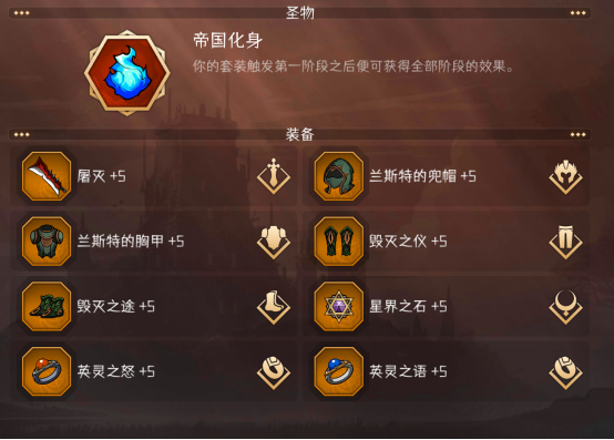 开荒期间不需要特意去搞辅助的装备,捡破烂并适当强化保证不被BOSS的AOE炸死即可,后续要冲层的时候考虑直接做太阳骑兵,反正辅助的归宿都是这个。圣物直接用群山就行。
