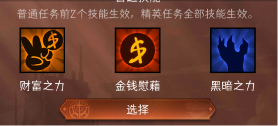 黑暗之力在血量压力不大的时候可以换成收买(简而言之就是能全程挂机过的时候),有的时候能直接秒掉一些很麻烦的小怪,稍微提速一些。打无尽的时候换成慈善治疗,词条方面如果有余力优先财富之力的金词条,不可阻挡优先级最高。