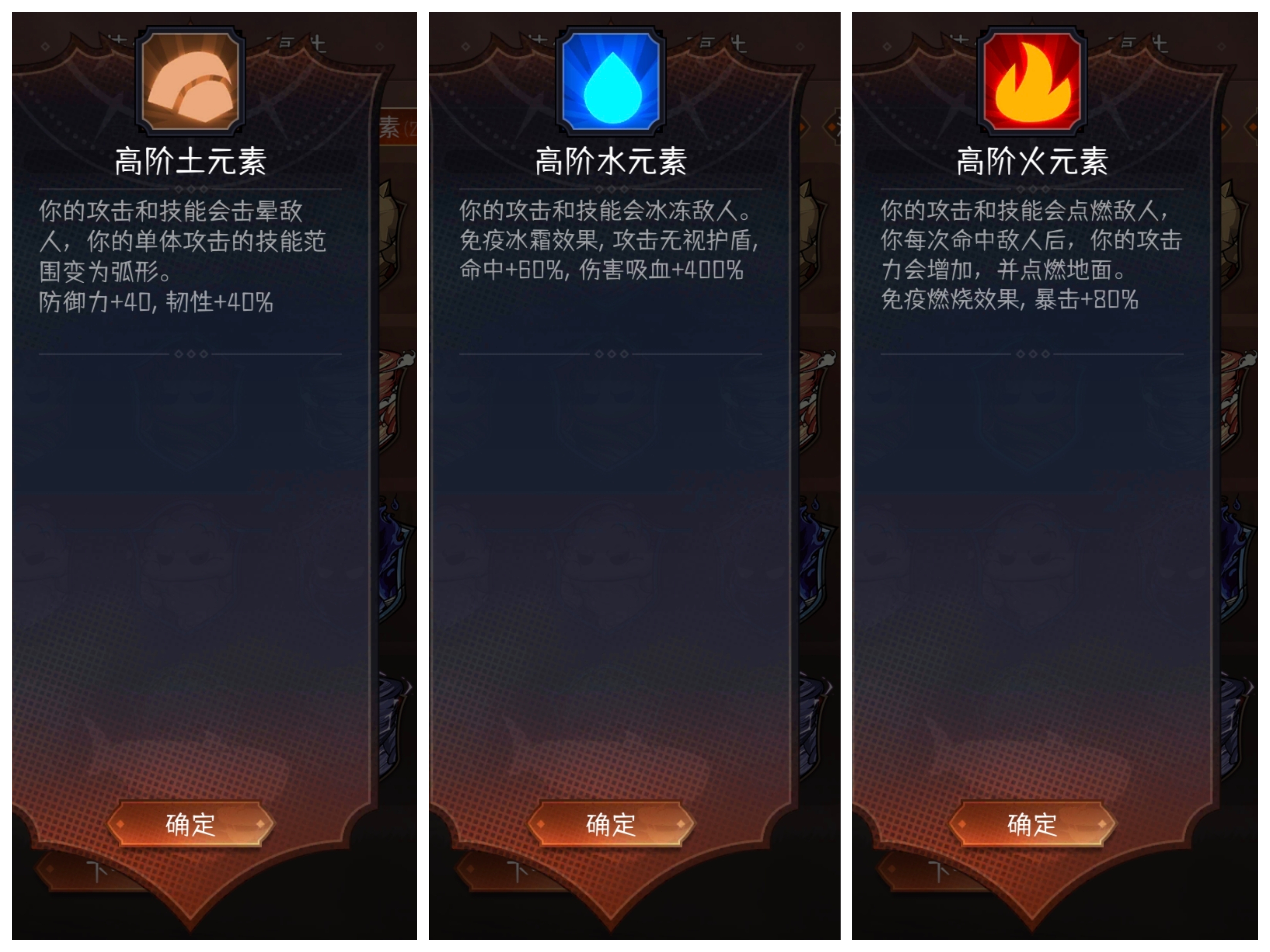 土元素:攻击附带眩晕,合体鸡肋,只能召唤当肉盾抗伤。(注意不要合体如鼓舞这样buff技能,不然加友方会被土元素眩晕)
