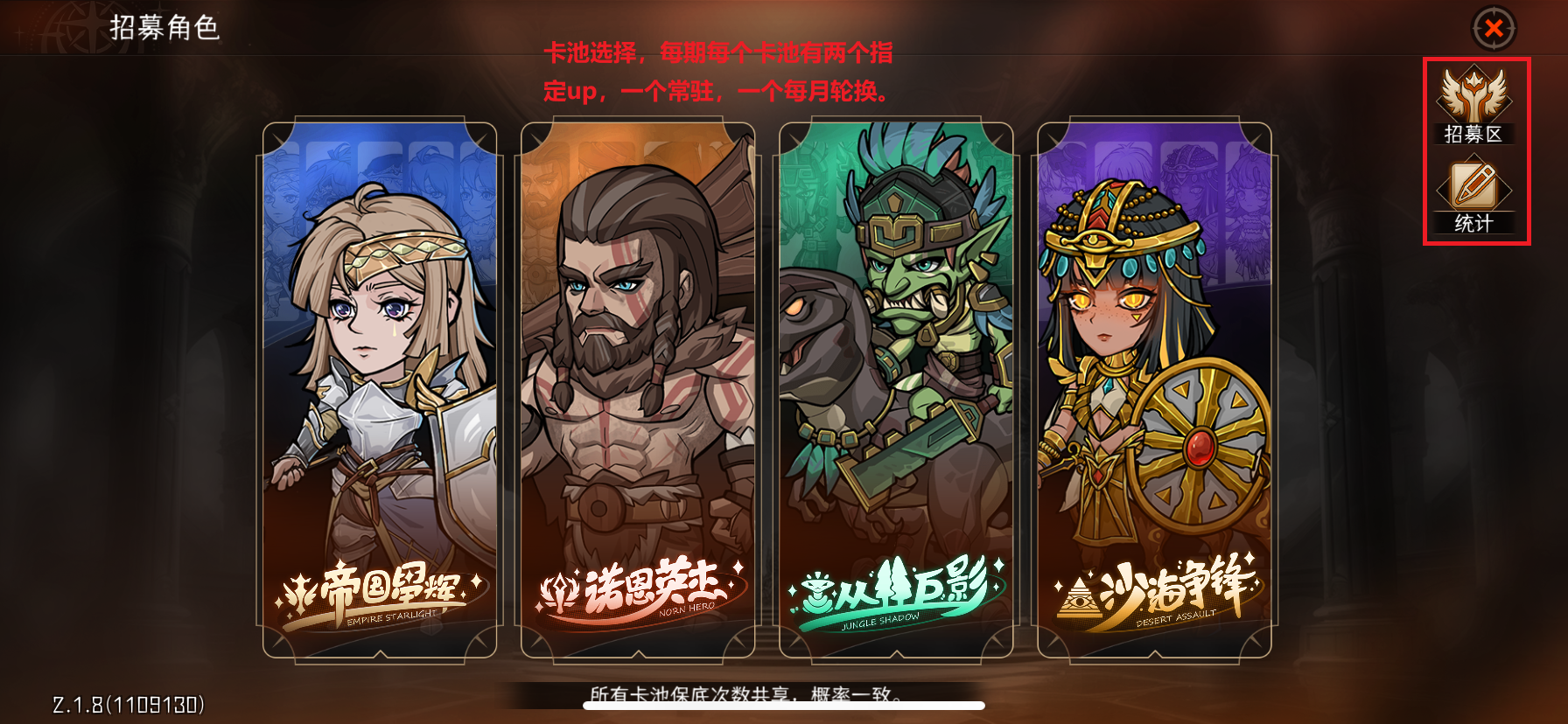 卡池每期每个卡池有两个指定up,一个常驻,一个每个月轮换。