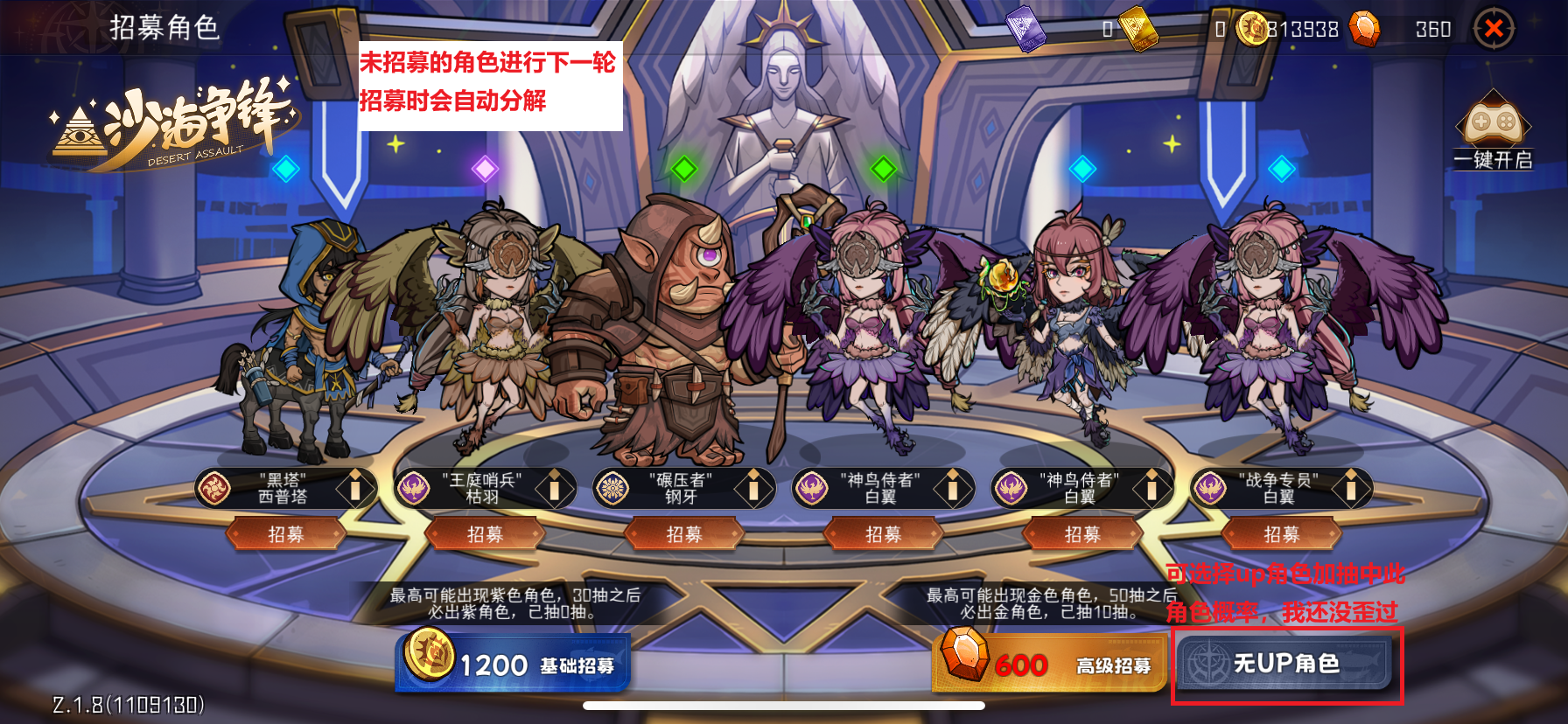 未招募的角色自动分解。