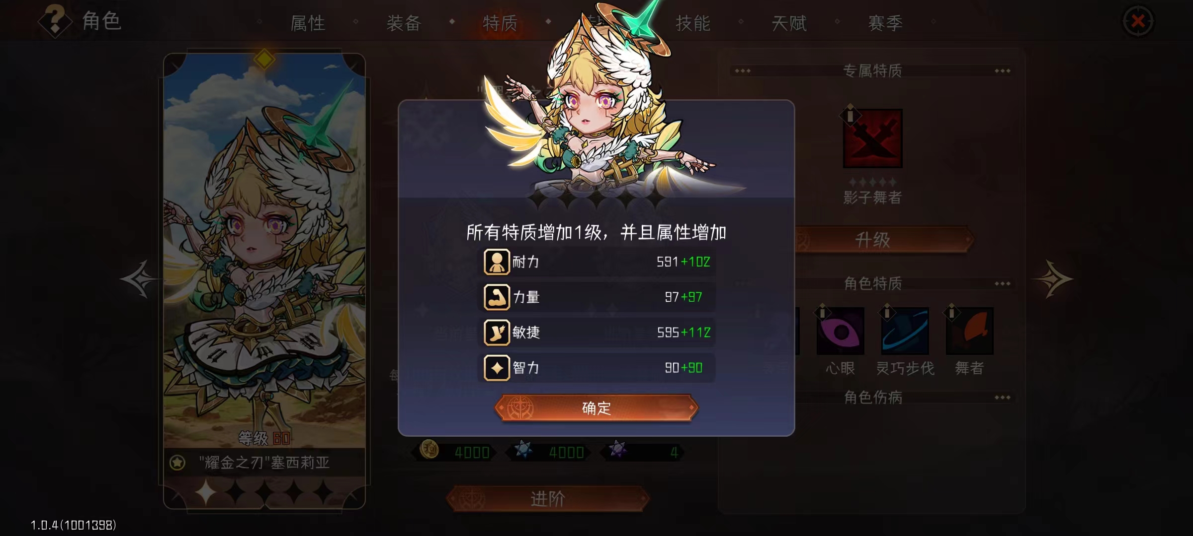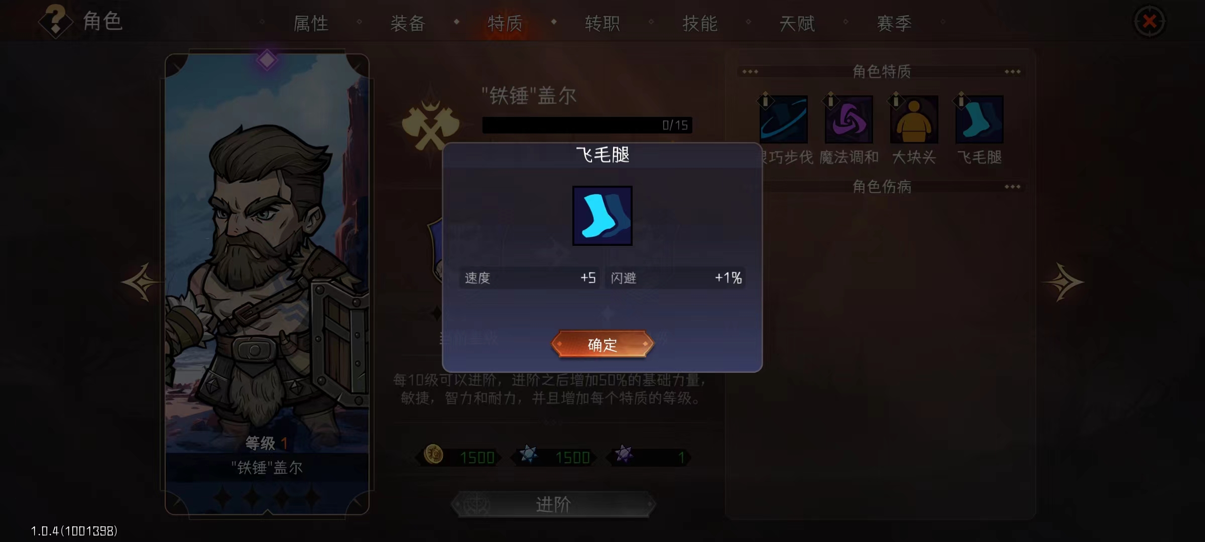 将初始特质灵活洗为飞毛腿(速度+5,闪避+1%)的情况下,扣除灵活的6%敏捷加成(约为200),实际特质进阶提供闪避值:(1%+2%+1%)X6≈22%