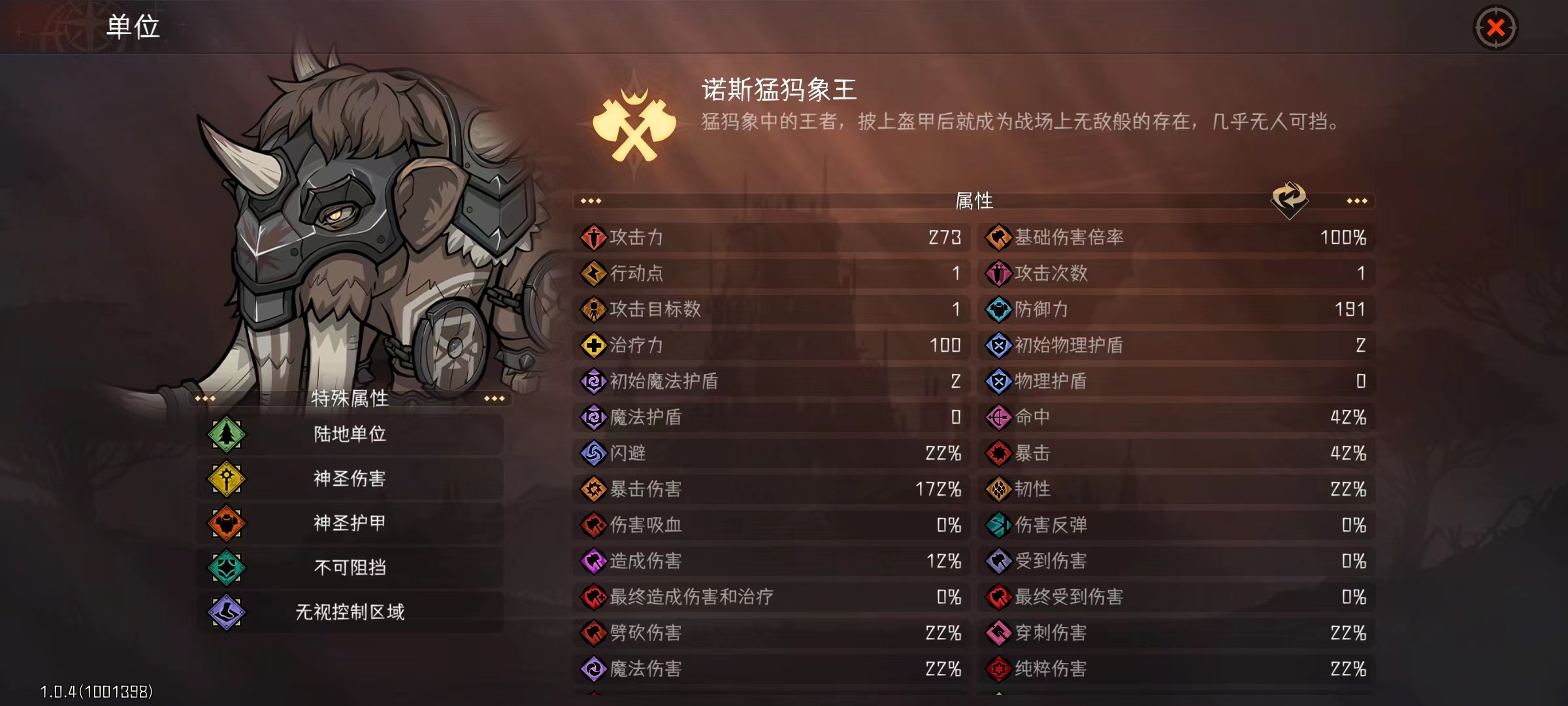 那么我们在实际操作中可以先通过难度1获取敌人的基础数据,然后通过难度21获取敌人在经过次属性加成和每次战斗次属性加成的情况下的成长数据。最后分析两个难度下数据增长的规律以获取成长词条的计算公式。例如以真理之塔的金任务BOSS猛犸巨牙为例,在难度为1的情况下获得BOSS的命中为20%