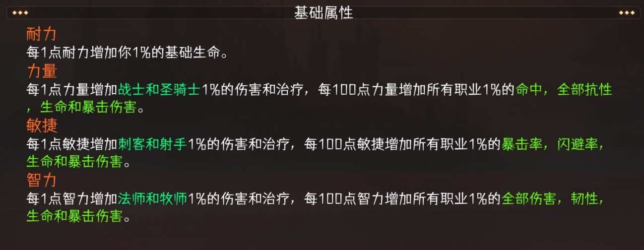 不记录命中暴击闪避等属性的原因是因为帝国套和群山圣物所提升的基础属性对命中暴击闪避等属性的影响可直接在上图面板的基础上计算即可