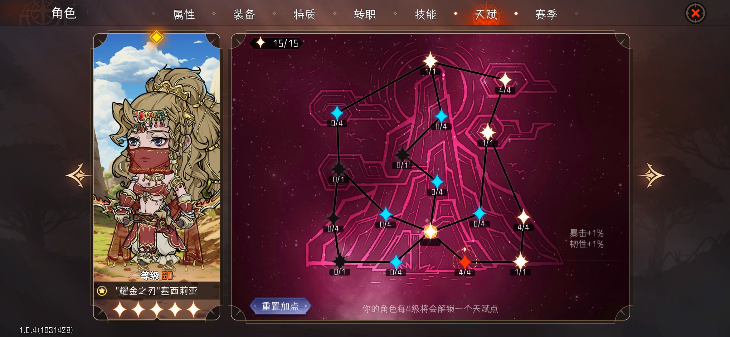 在这里也记录一个加上特质和天赋后的面板,方便我后续查看