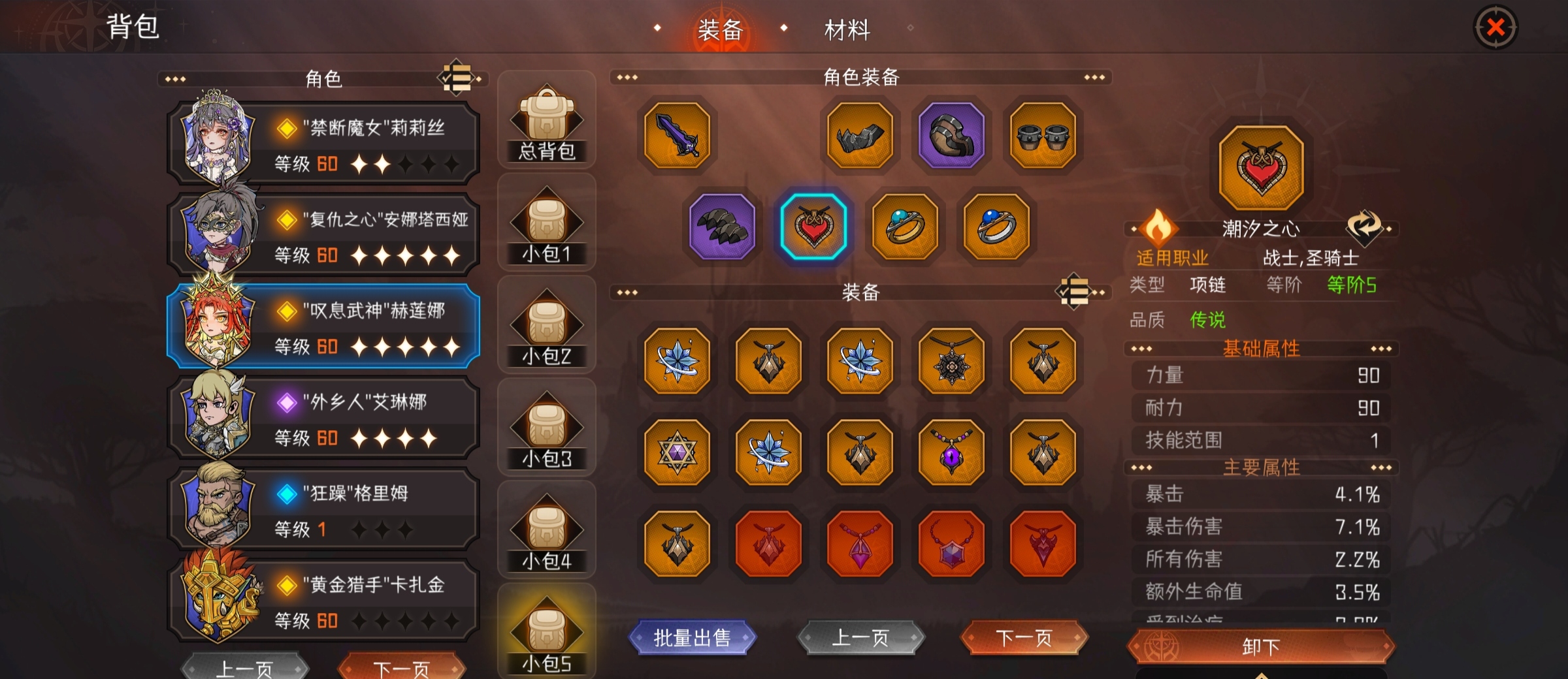 装备筛选功能,即便筛选过后也依旧杂乱无章令人头疼,但是和大小包结合后,你将会拥有一个无比整洁的背包。