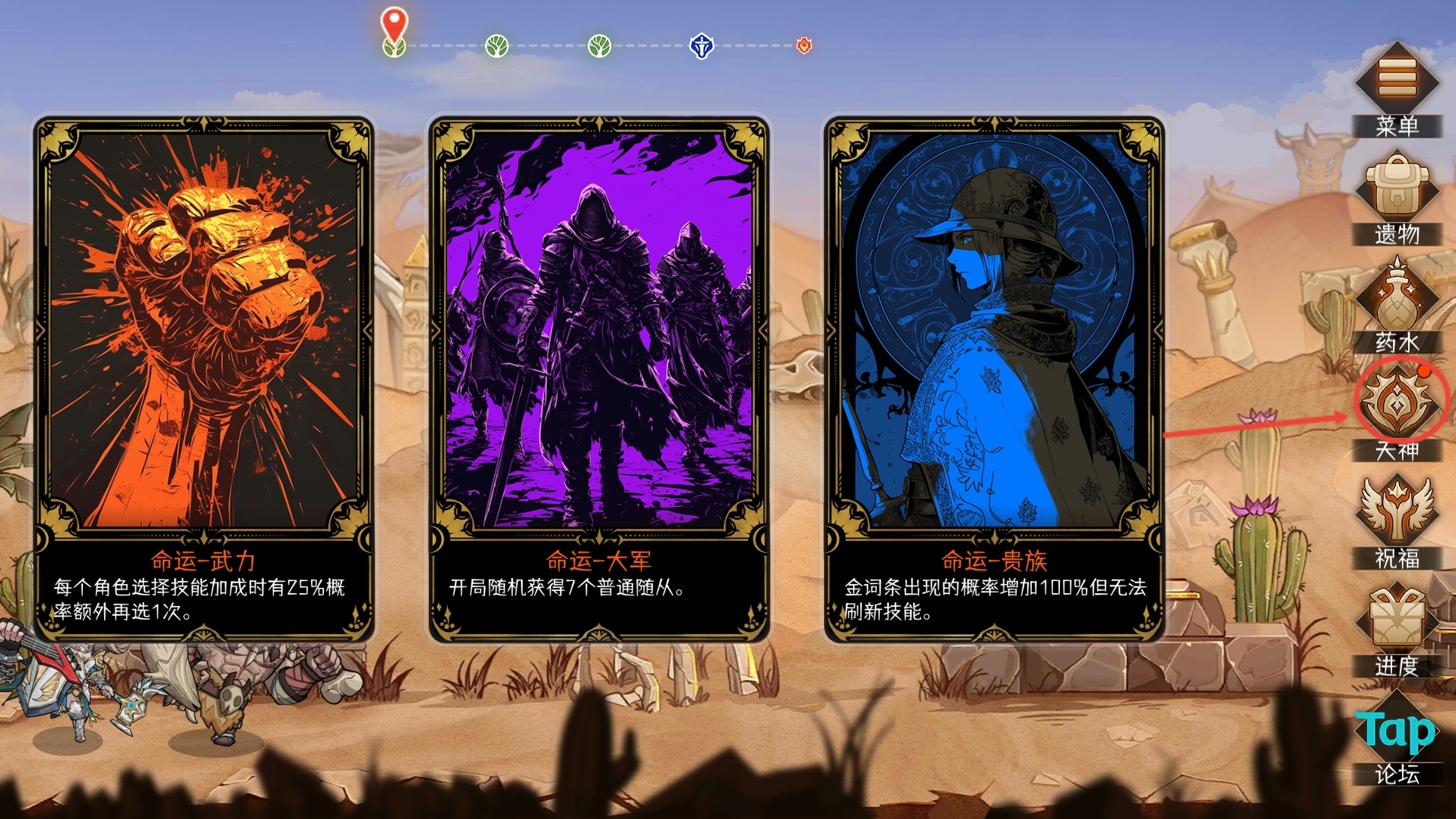 和选命运一样,遗物也是如此,点进度可以看到本局遗物。除了开新层,不推荐一直刷,最终都是要自靠实力赢而不是运气。