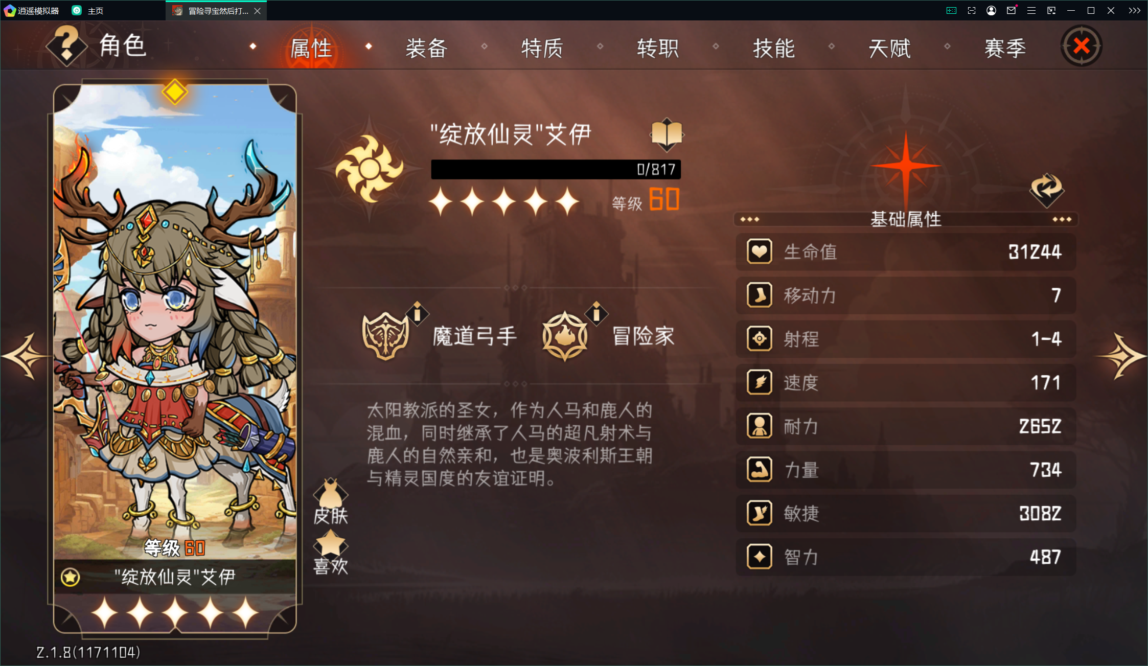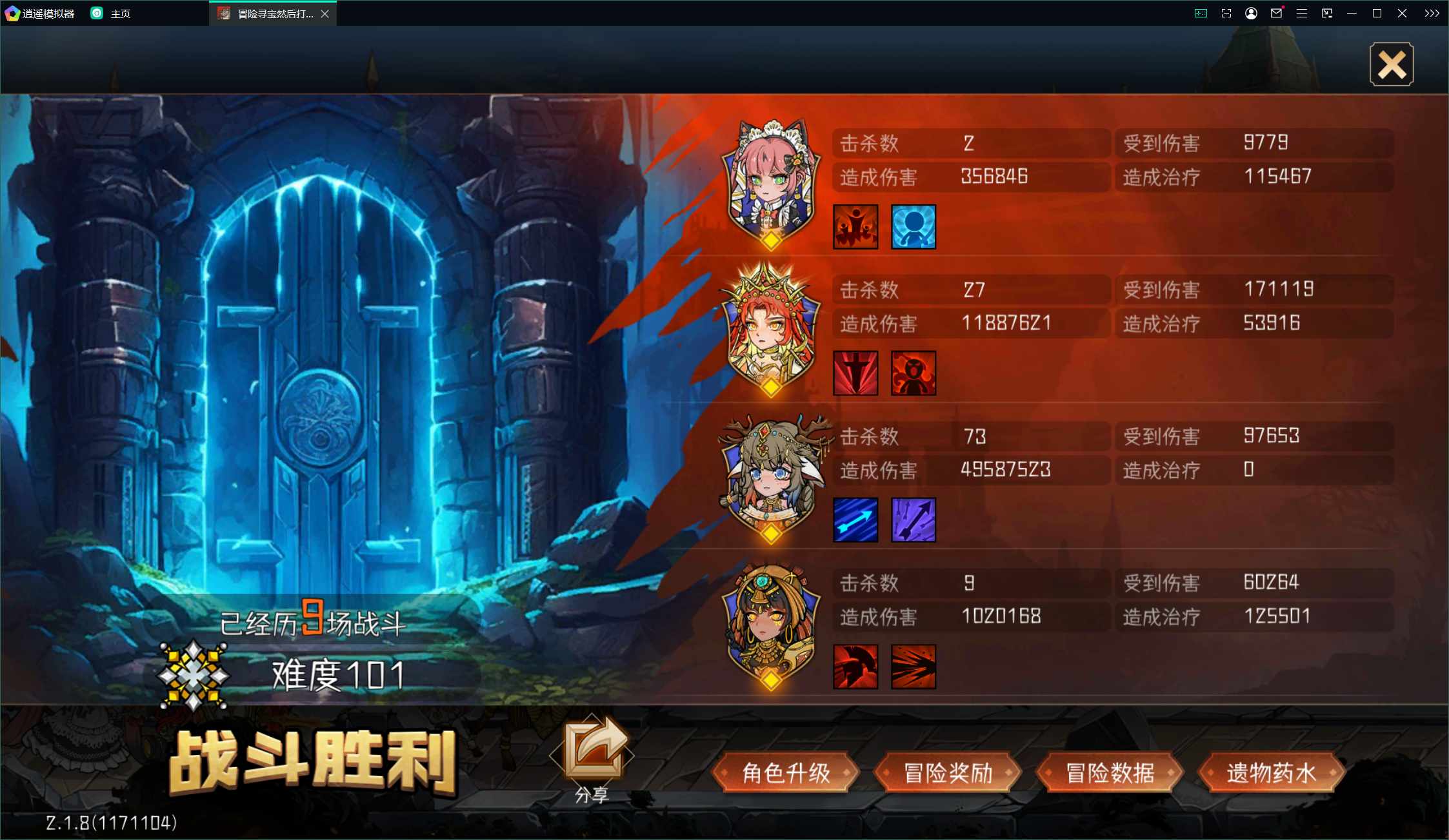思路就是帝牧和人马保鹿哥然后给鹿哥加成全靠鹿哥打伤害,鹿哥两个技能非常适合清怪对单伤害其实也还好,对101关卡实属挺适合的。剑圣可以换帝骑进一步强化鹿哥生存,我上土鸡剑圣是想增加对单能力,打药水和遗物能更快。