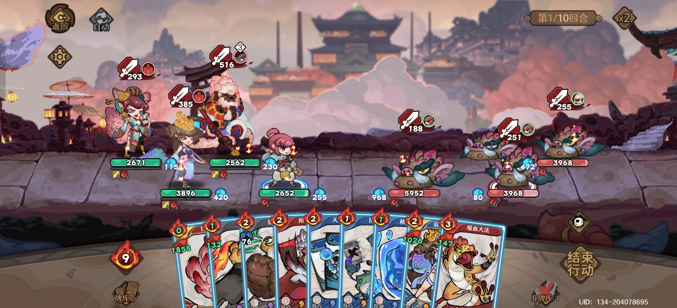 下面介绍一次打幻境或者其他副本时的过牌思路,我觉得这个也很重要,因为刚开始玩的时候,很多过牌机制都不太明白,就看费用少或者其他的能打出去就行,到最后发现其实浪费很多输出。核心观点刚才也说了,就是找到弱水三千,怎么找呢,关键在于《至阳无极功》的使用。