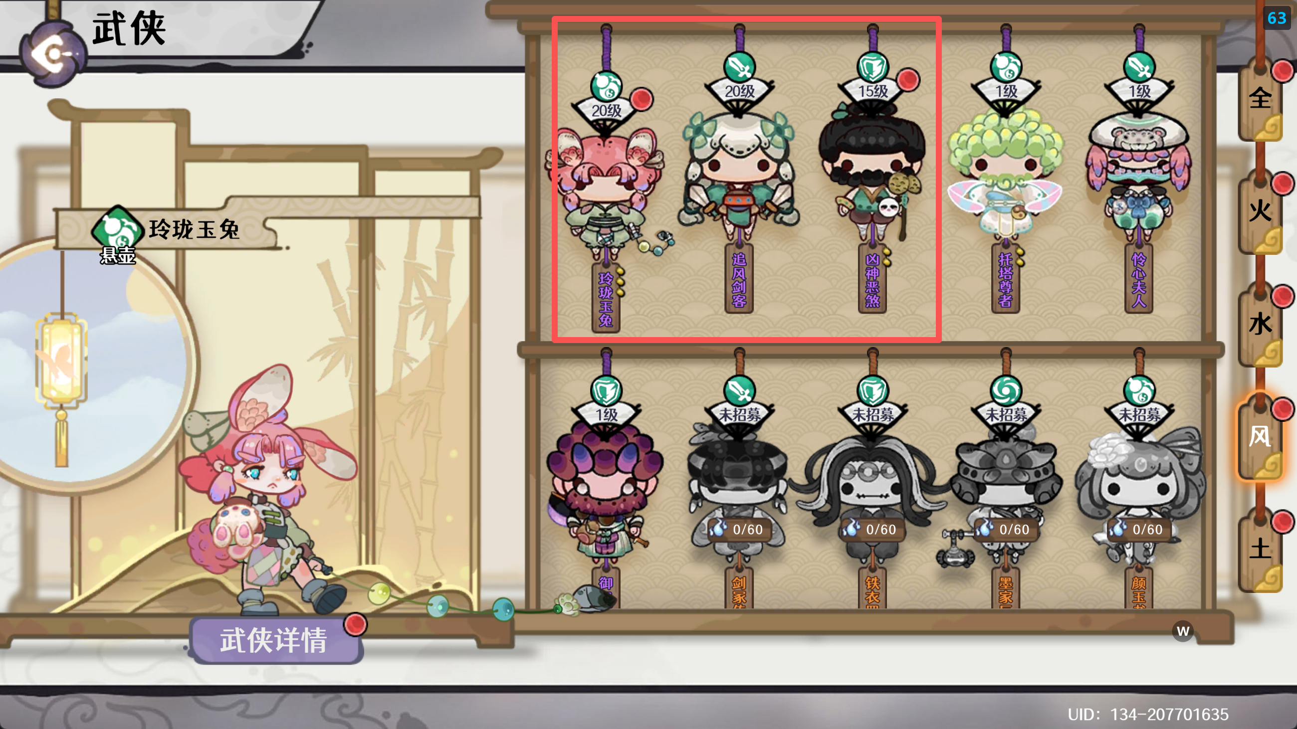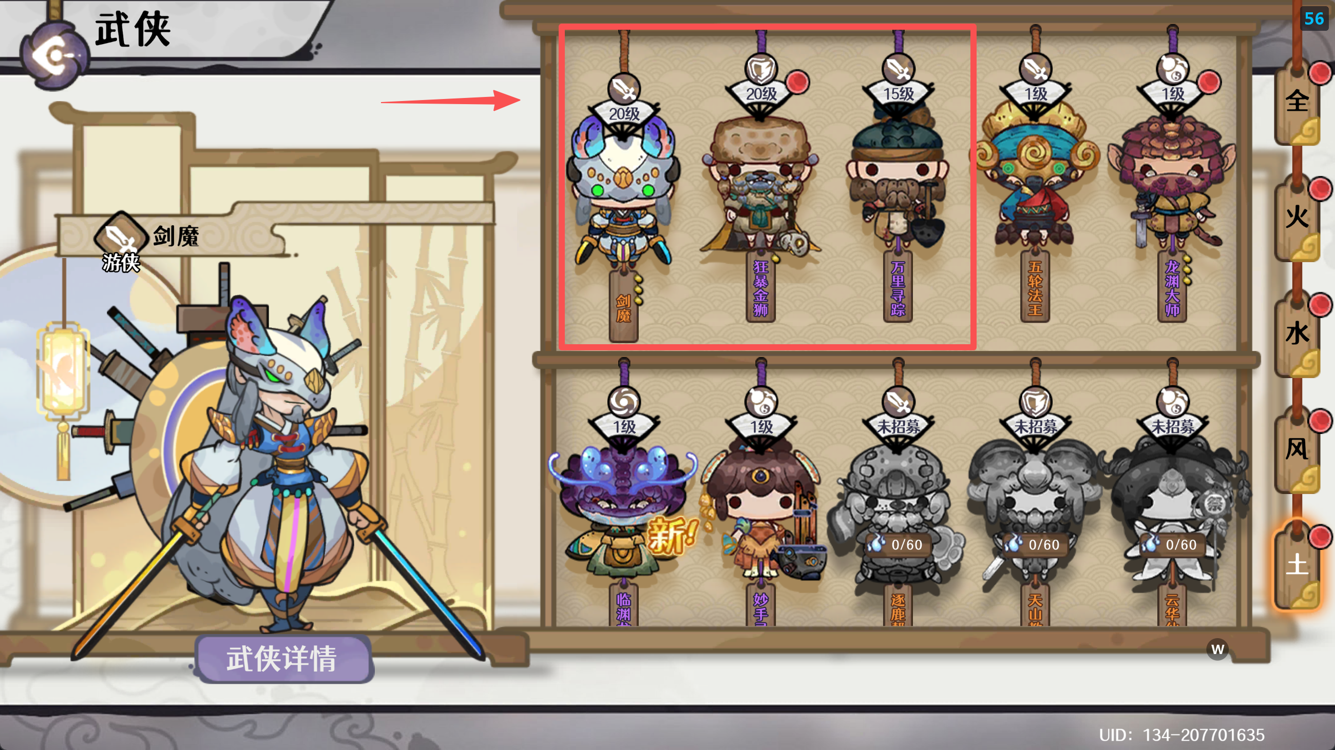 火、水、风、土,四系培养下列图片中的武侠即可。