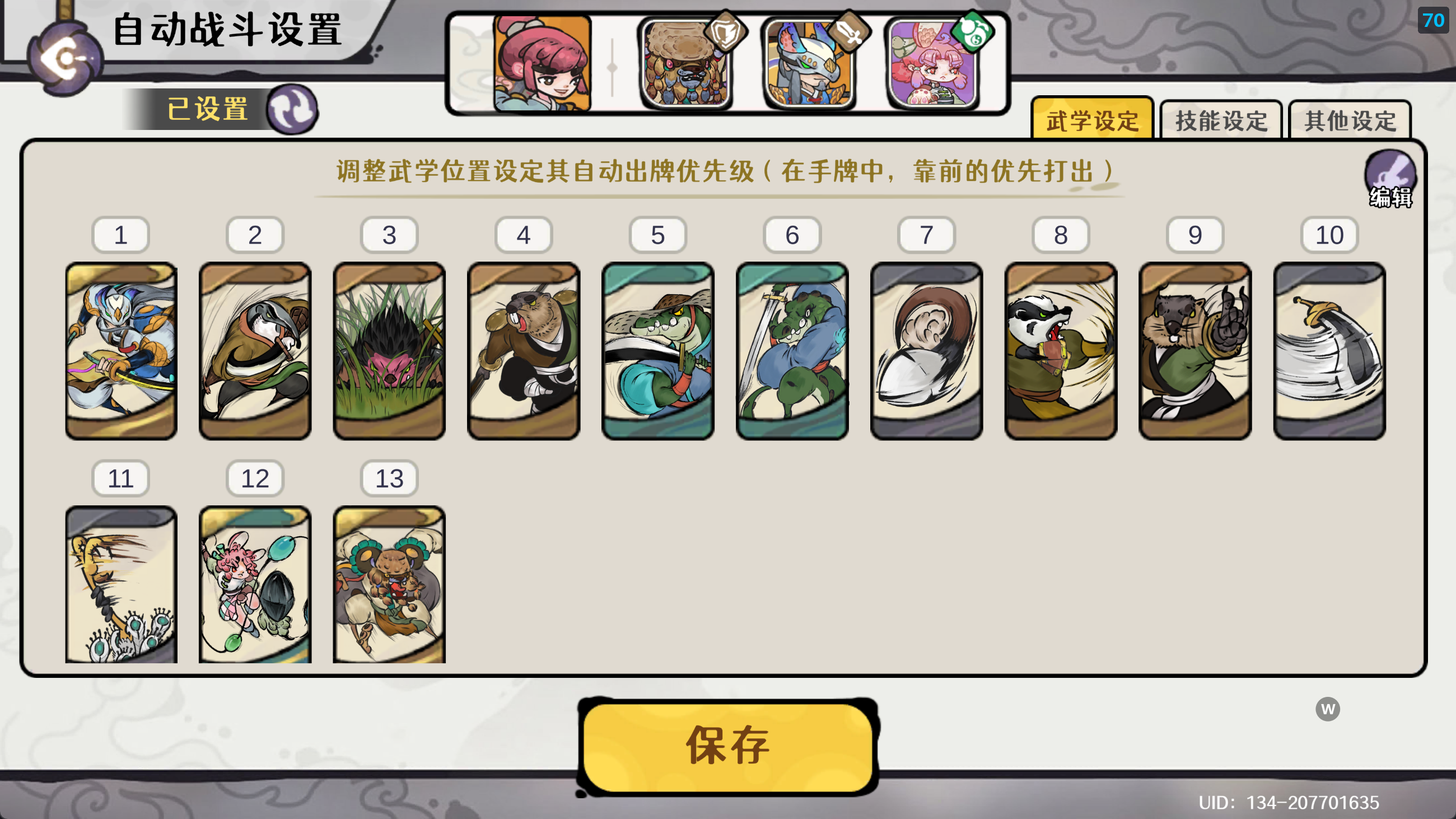 蓬莱仙典前9层直接打开右上角攻略,对照视频直接抄作业即可。第二天开荒我将各系打到了30层,获得的仙典令将上述武学卡按照1-2-3-4的升级顺序依次升级完毕。