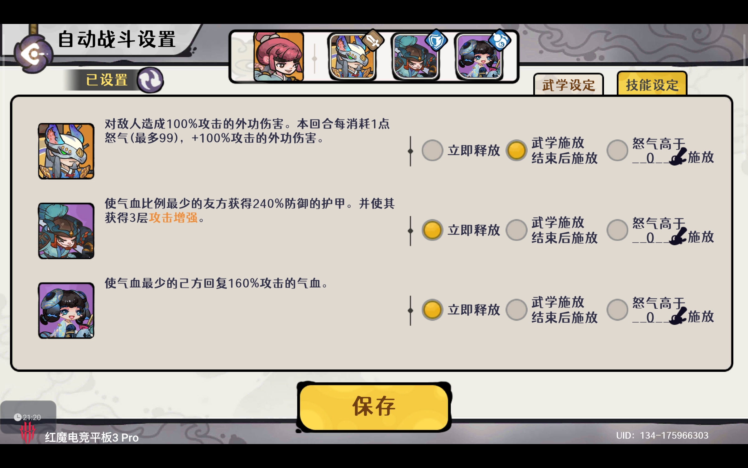 古今2-风起蓬莱【蓬莱仙典 水150层】剑魔1拖2自动打法及配置如下: