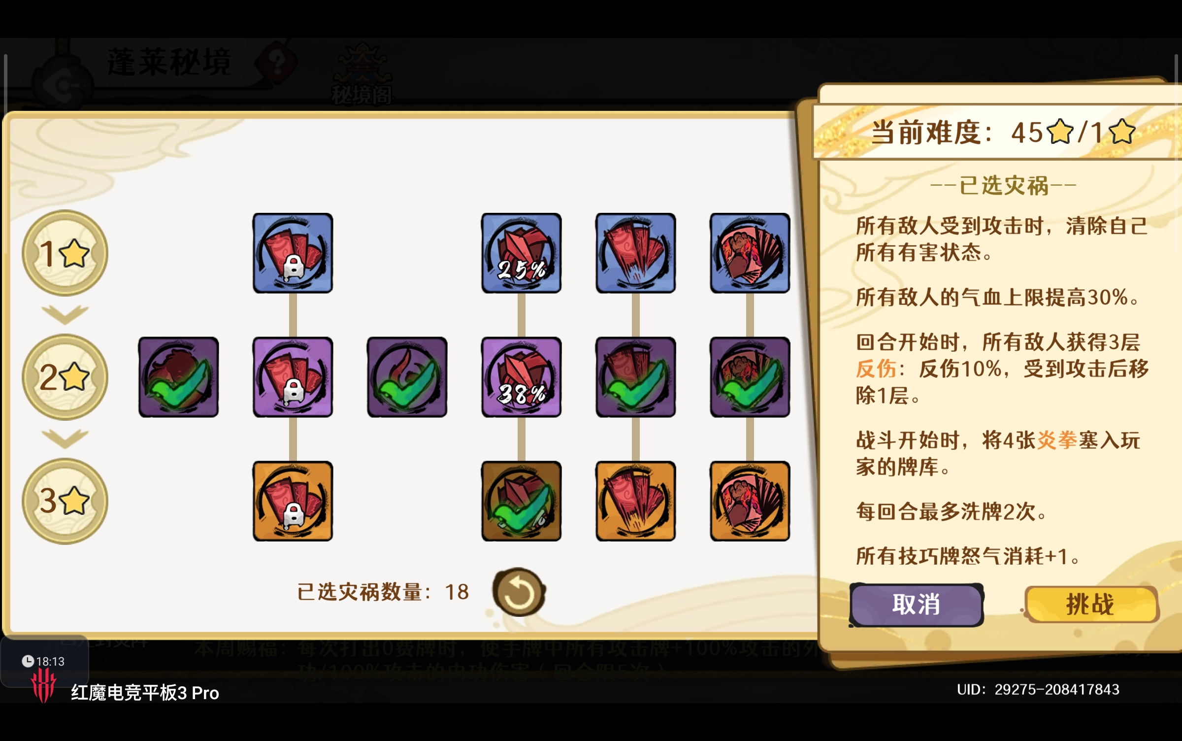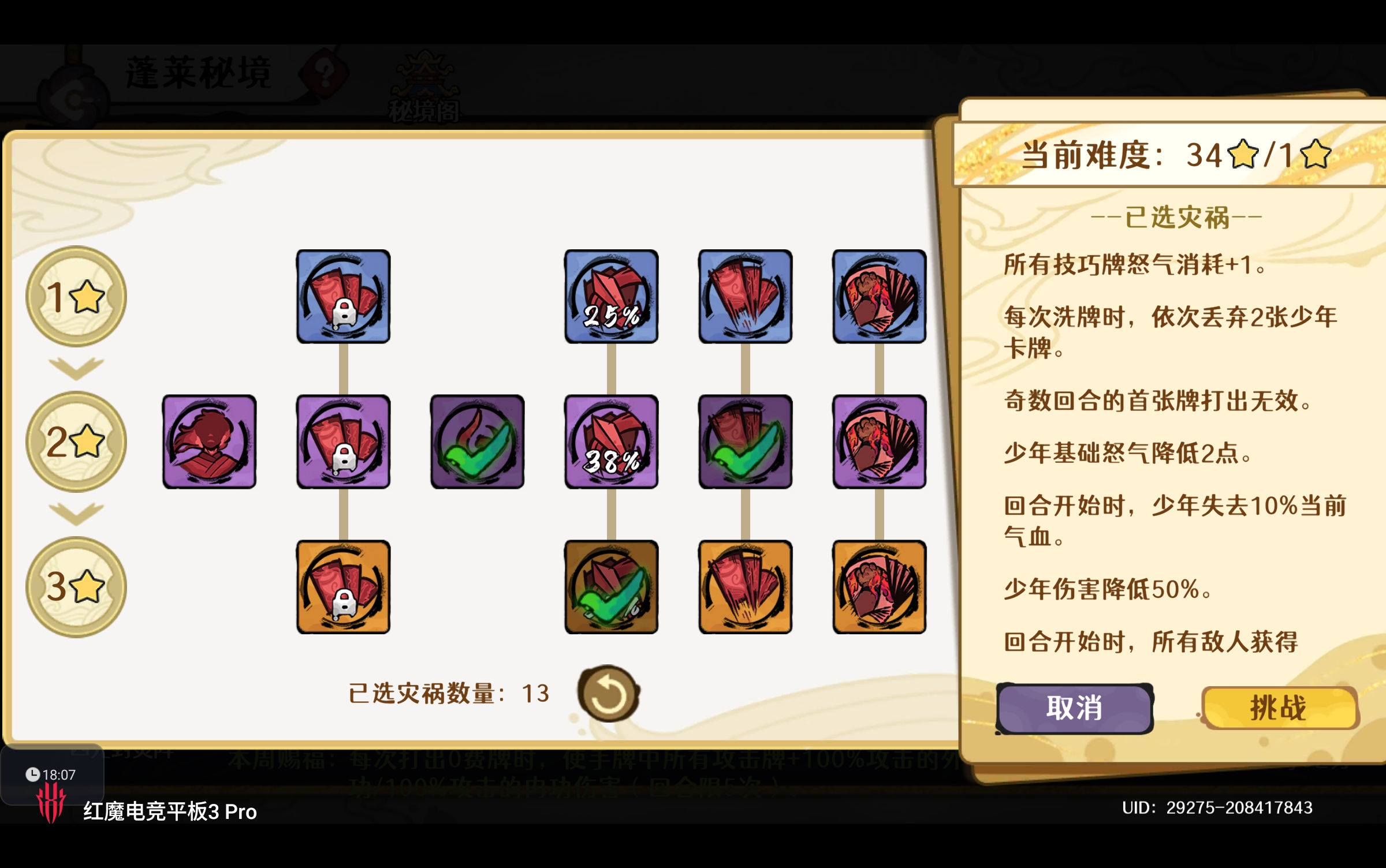 蓬莱秘境随着层数的提升,灾祸⭐级也需要逐步提升。