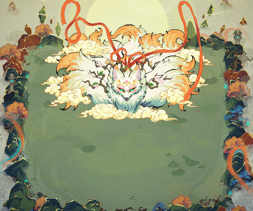 狐火:场景内6处位置会生成狐火,狐火会发射两波360°旋转子弹(两波之间间隔数秒)
