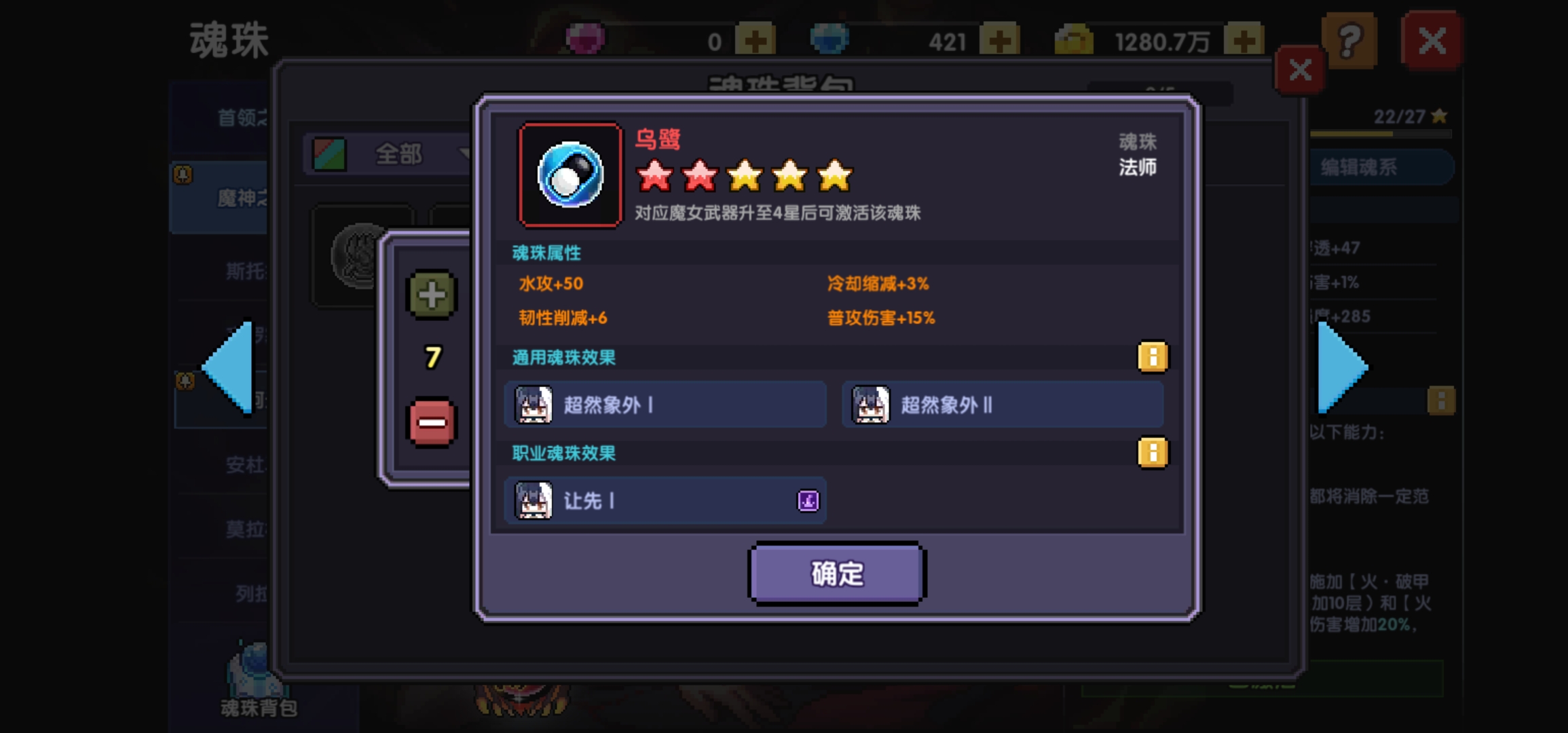 当前魔女魂珠做好后就要考虑重要的一点——魂珠属性