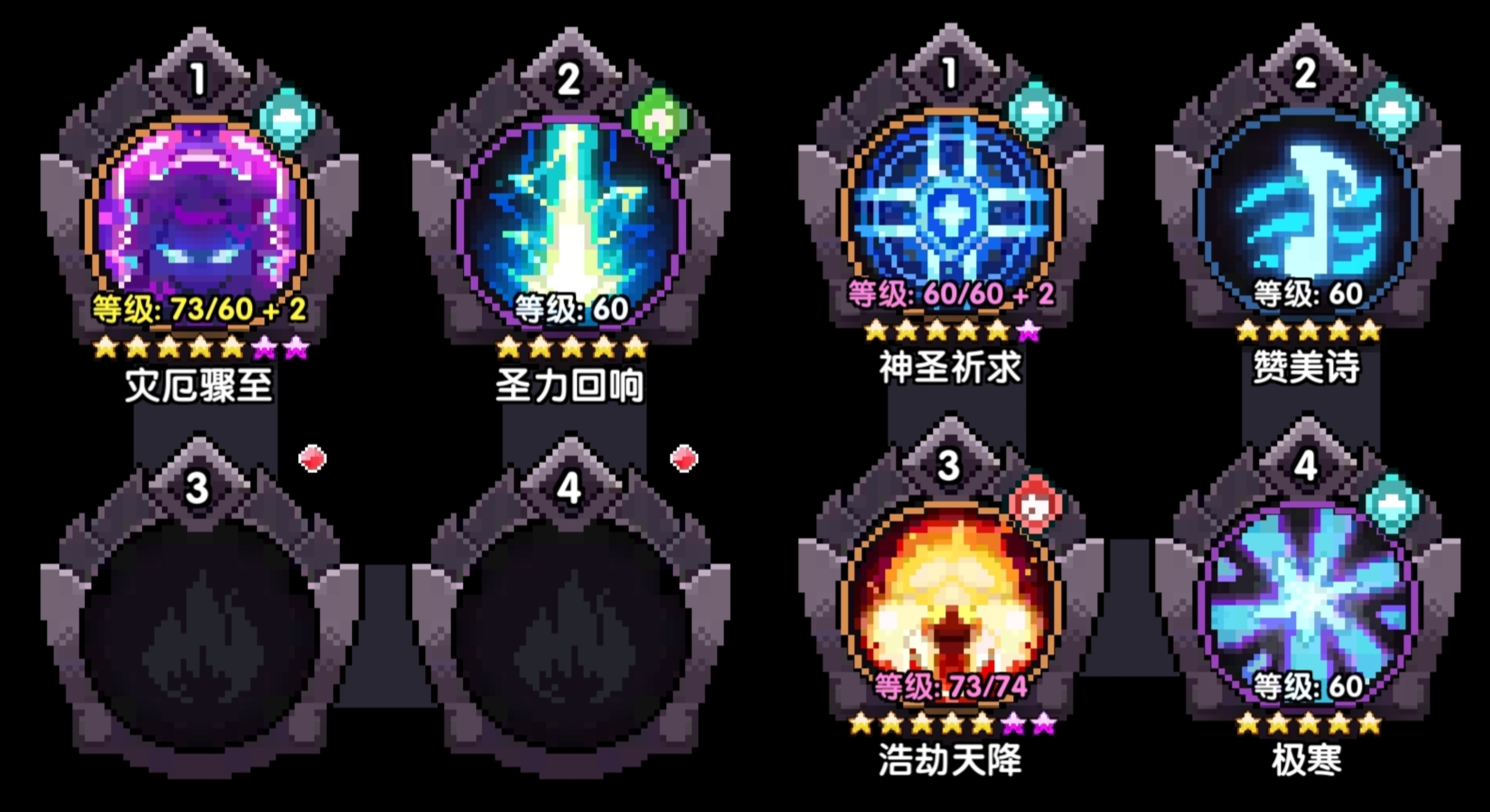 牧师剩余两个共享技能位:祈求,赞美诗,回响,种子,极寒,浩劫