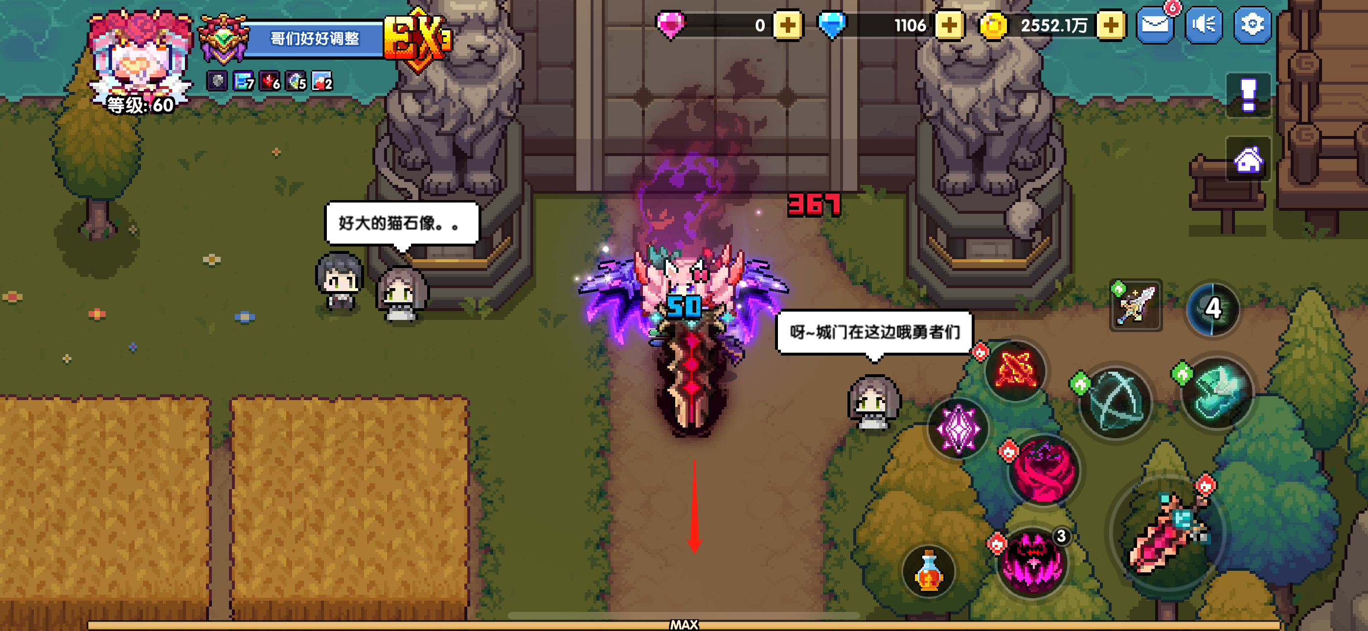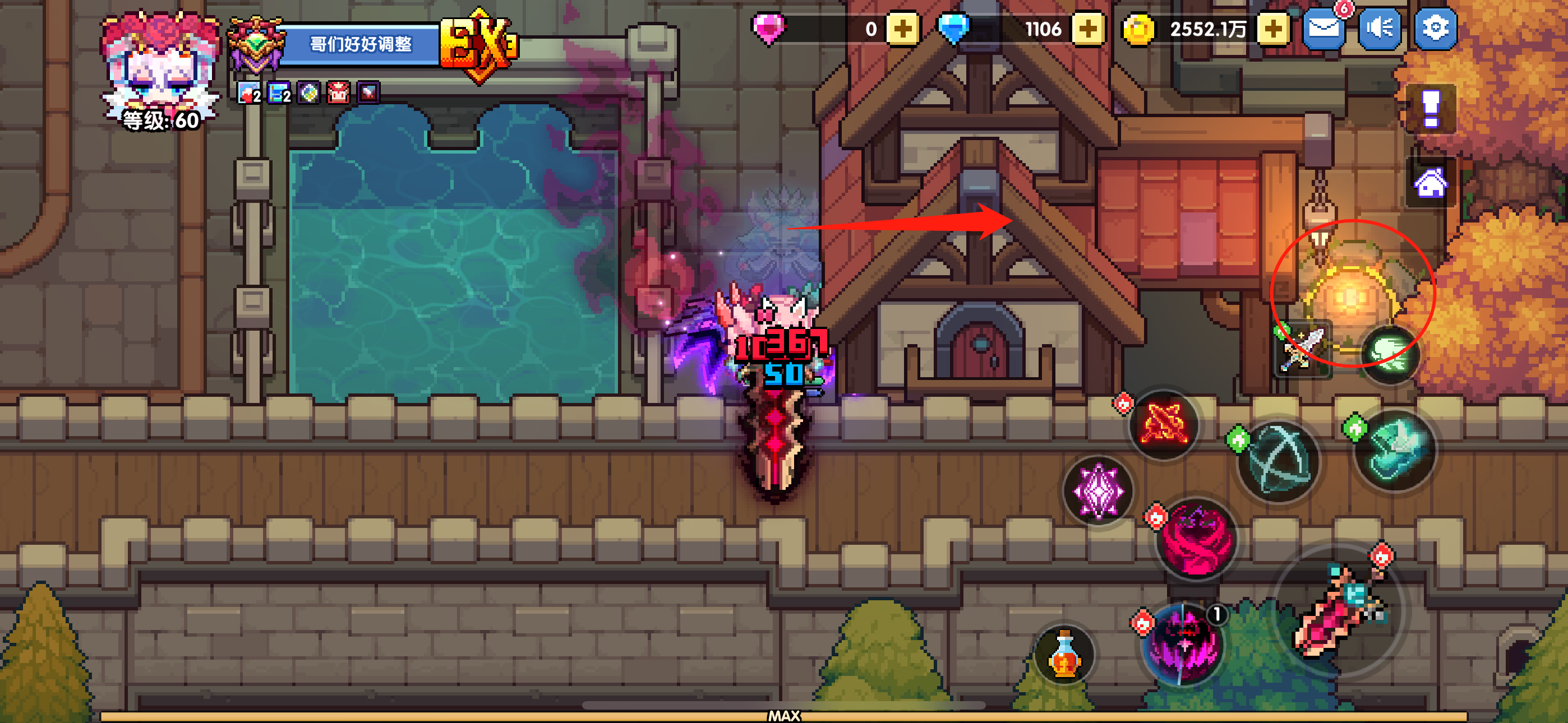 还是回到主城位置,往下方城门位置移动,不用出城门,看到图示箭头位置继续往里走,点击这个按钮,会传送到神秘区域
