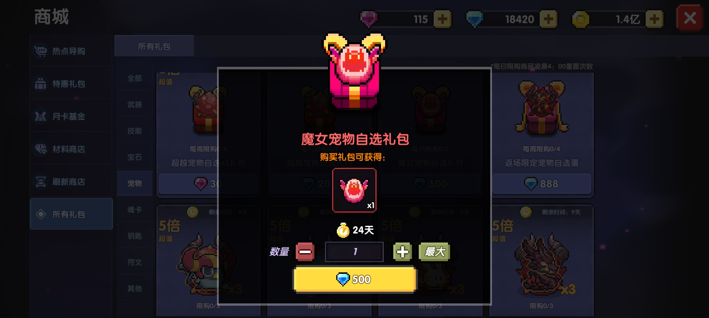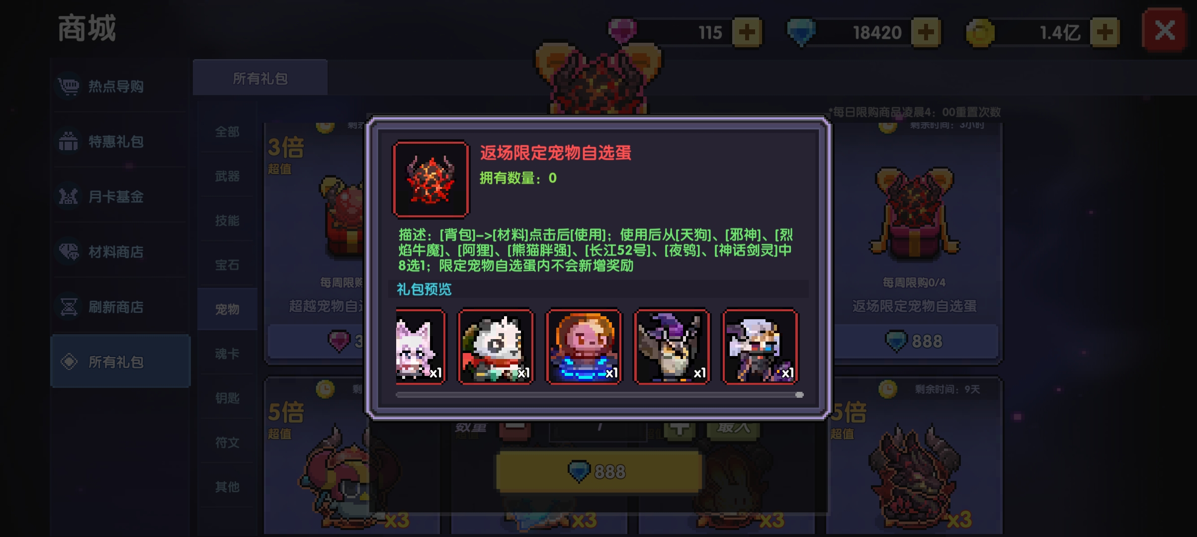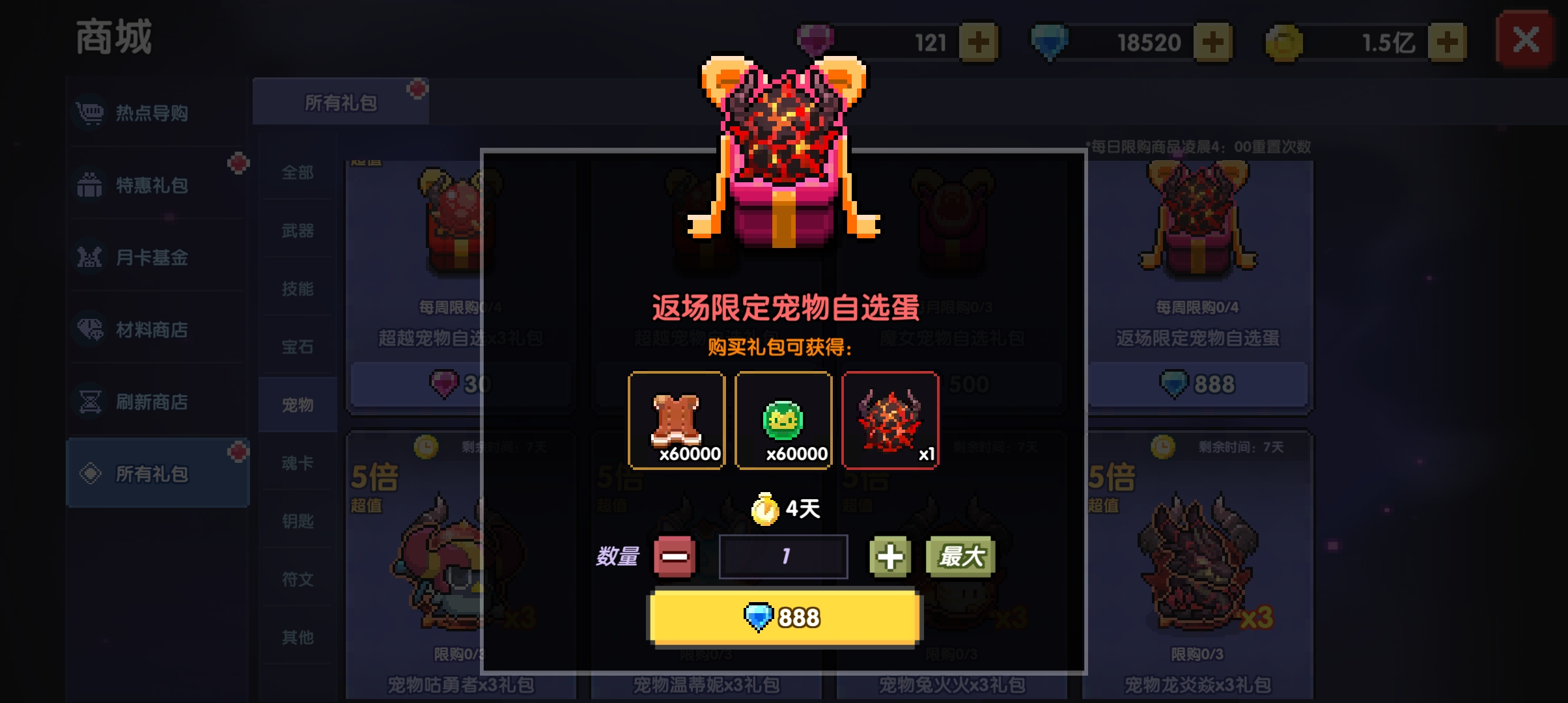 还有双十一勇者节等大活动会出限定宠物打折活动,建议攒够钻石等活动期间再买