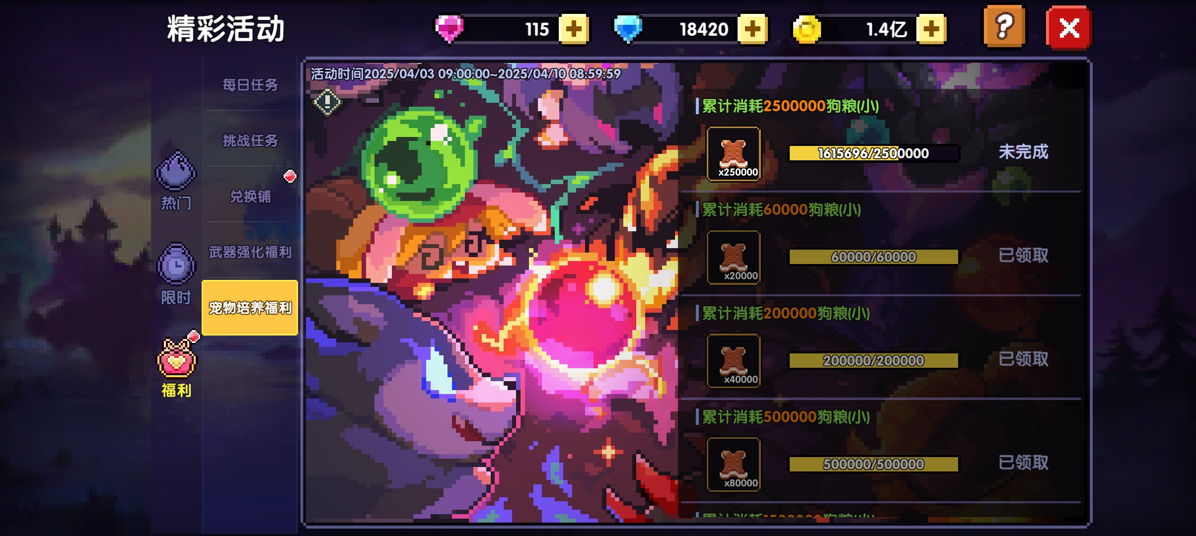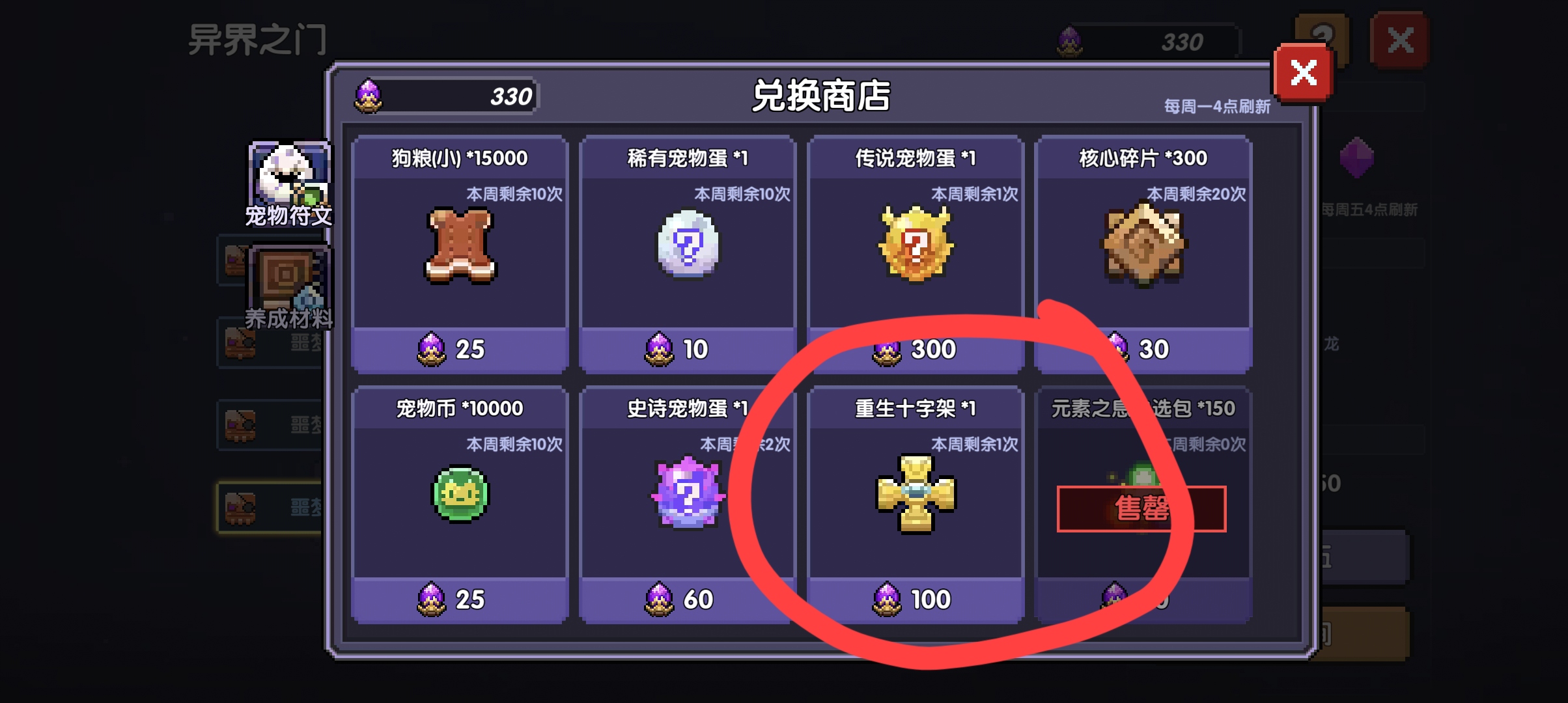 异界商店兑换十字架,每次出上述活动时重置宠物,可以获得更多狗粮