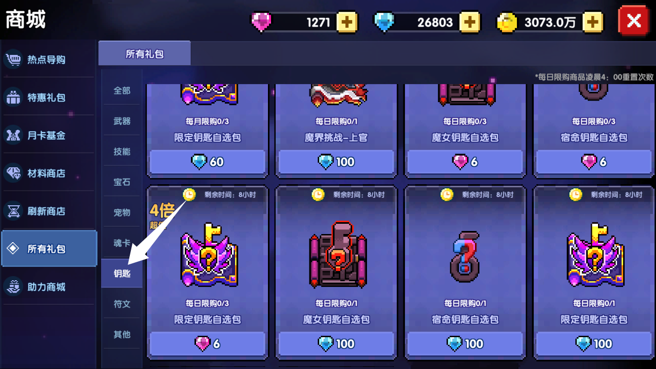 魔女钥匙、宿命魔女钥匙、主手魔女钥匙。可以慢慢买,做魂珠需要,缺钻石可以暂停