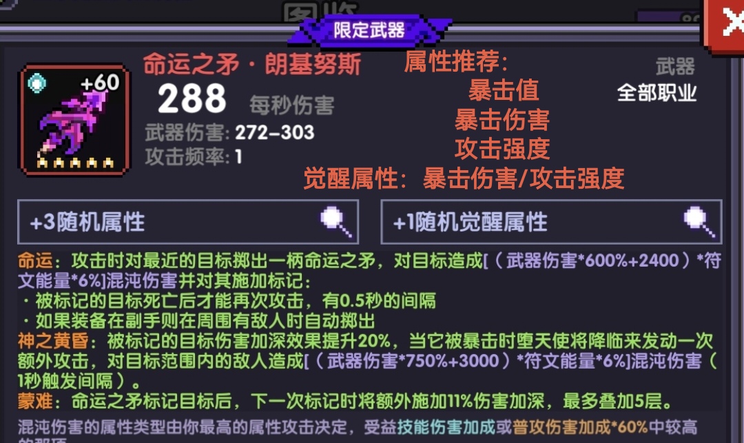 命运之矛(水)提供最高75%伤害加深,要叠层,不适合群怪,可用做辅助武器
