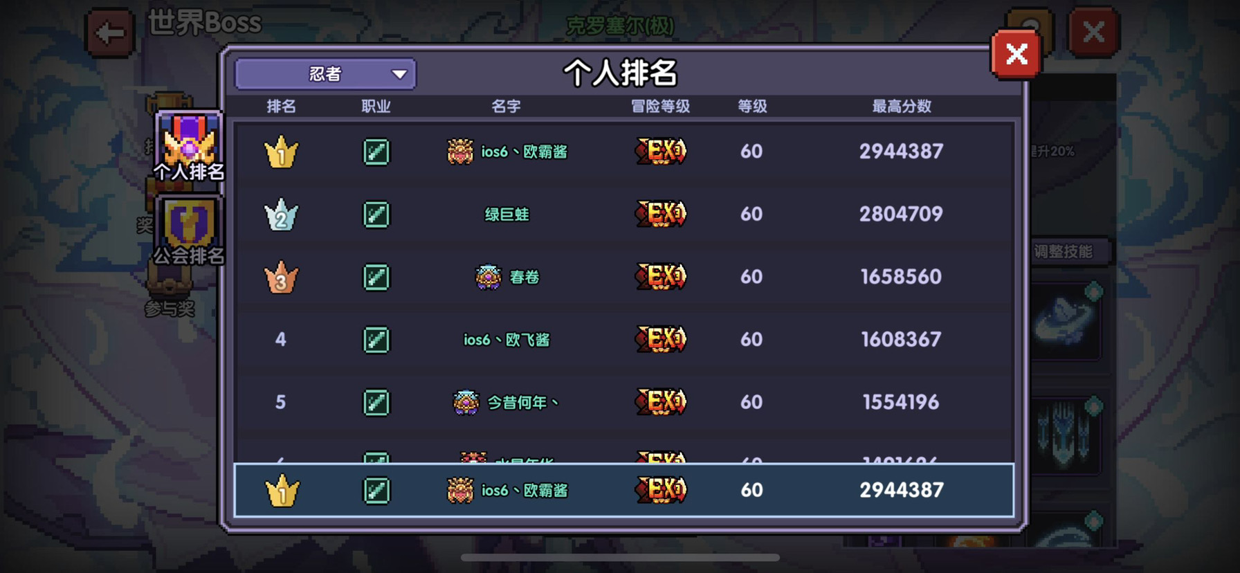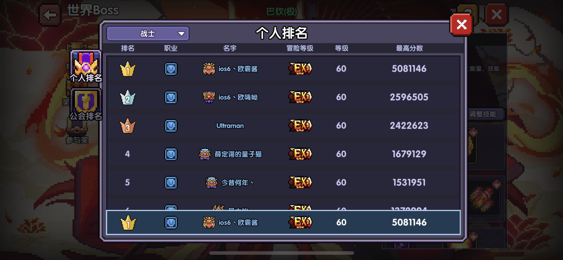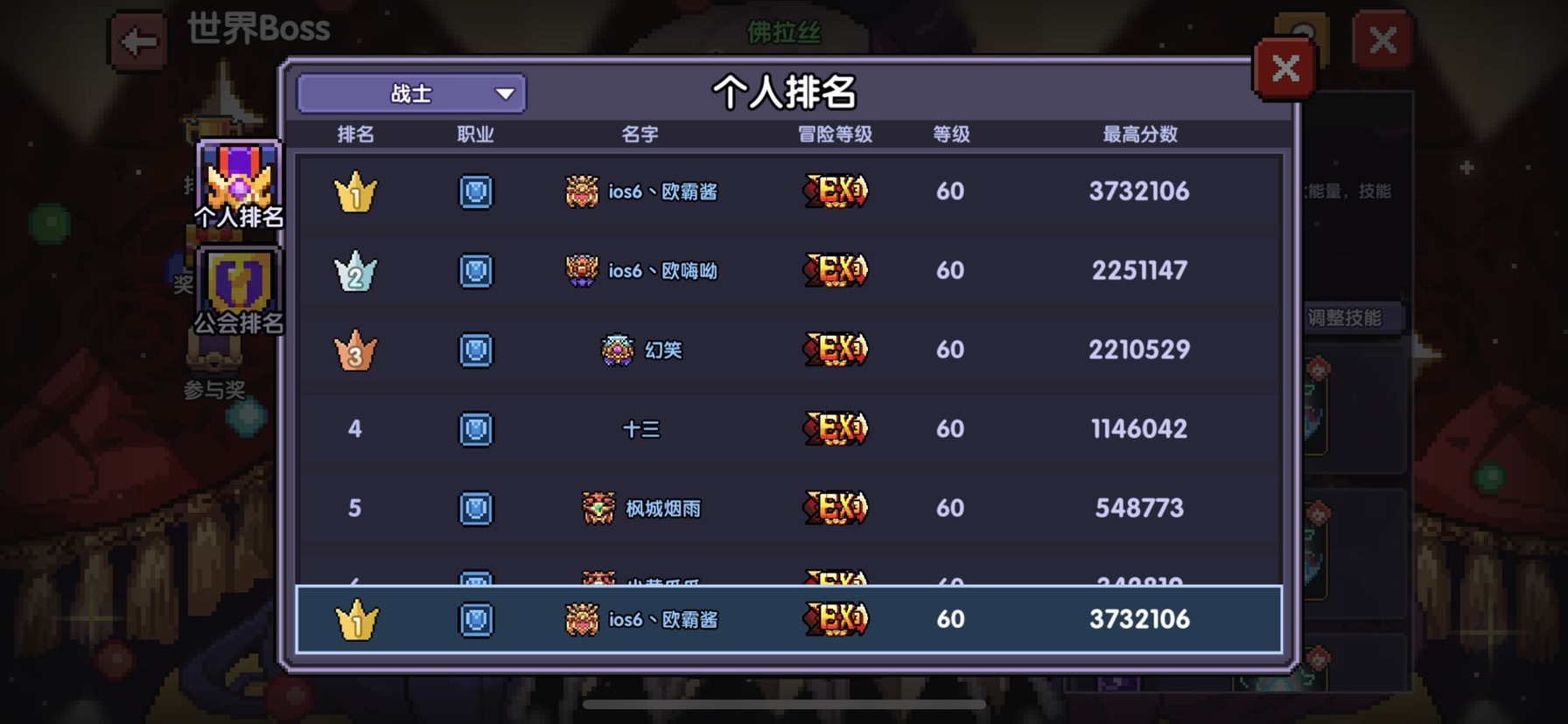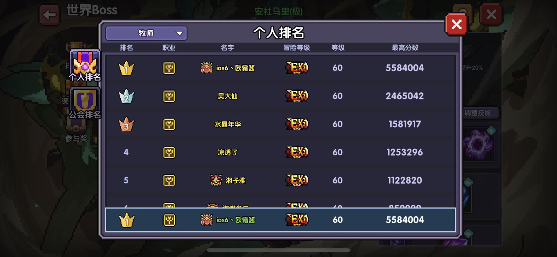 大家好,我是ios6区的小霸霸,很久没发帖子了,囤了一波数据给大家展示一下各职业世界boss组队对王的强度情况。