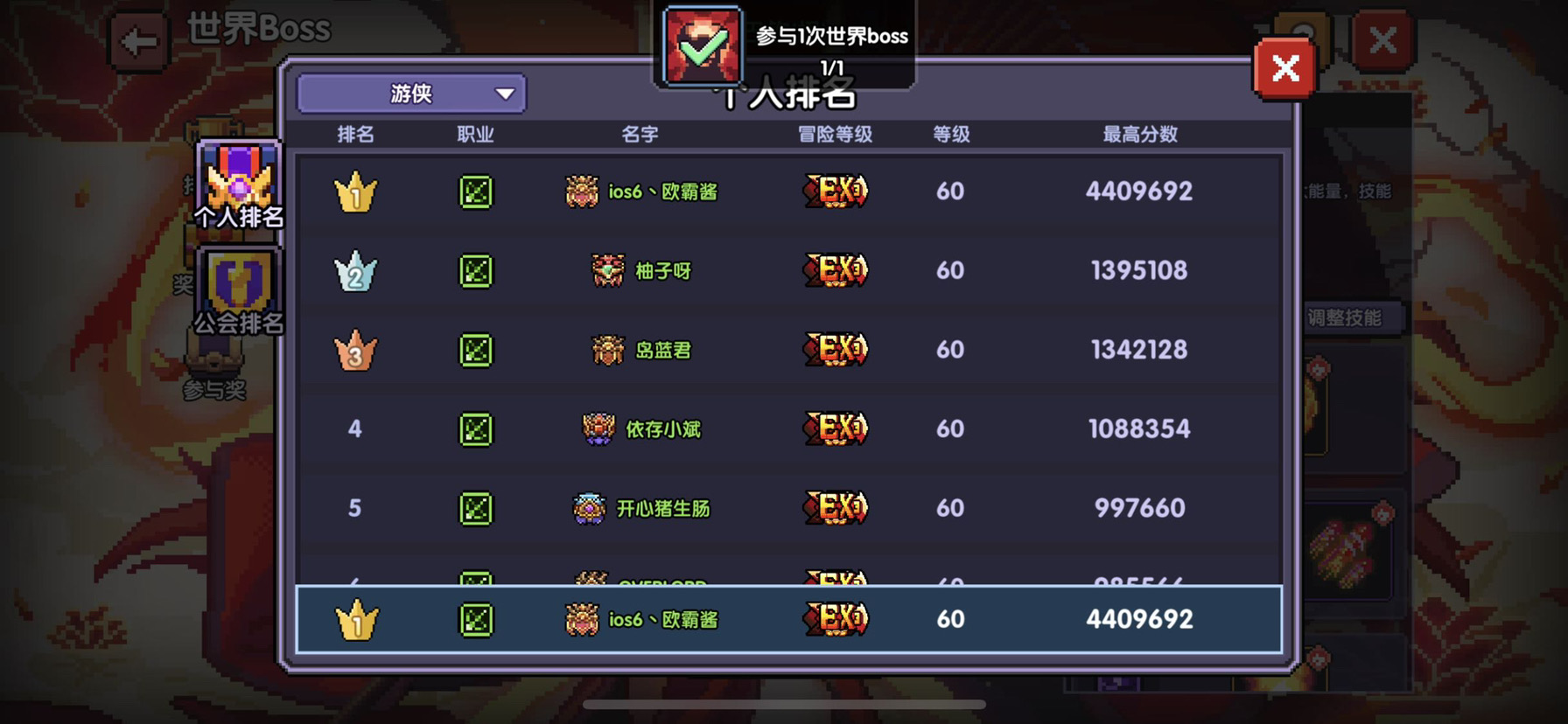 我的勇者各职业世界boss组队强度情况(2022年1月-3月)