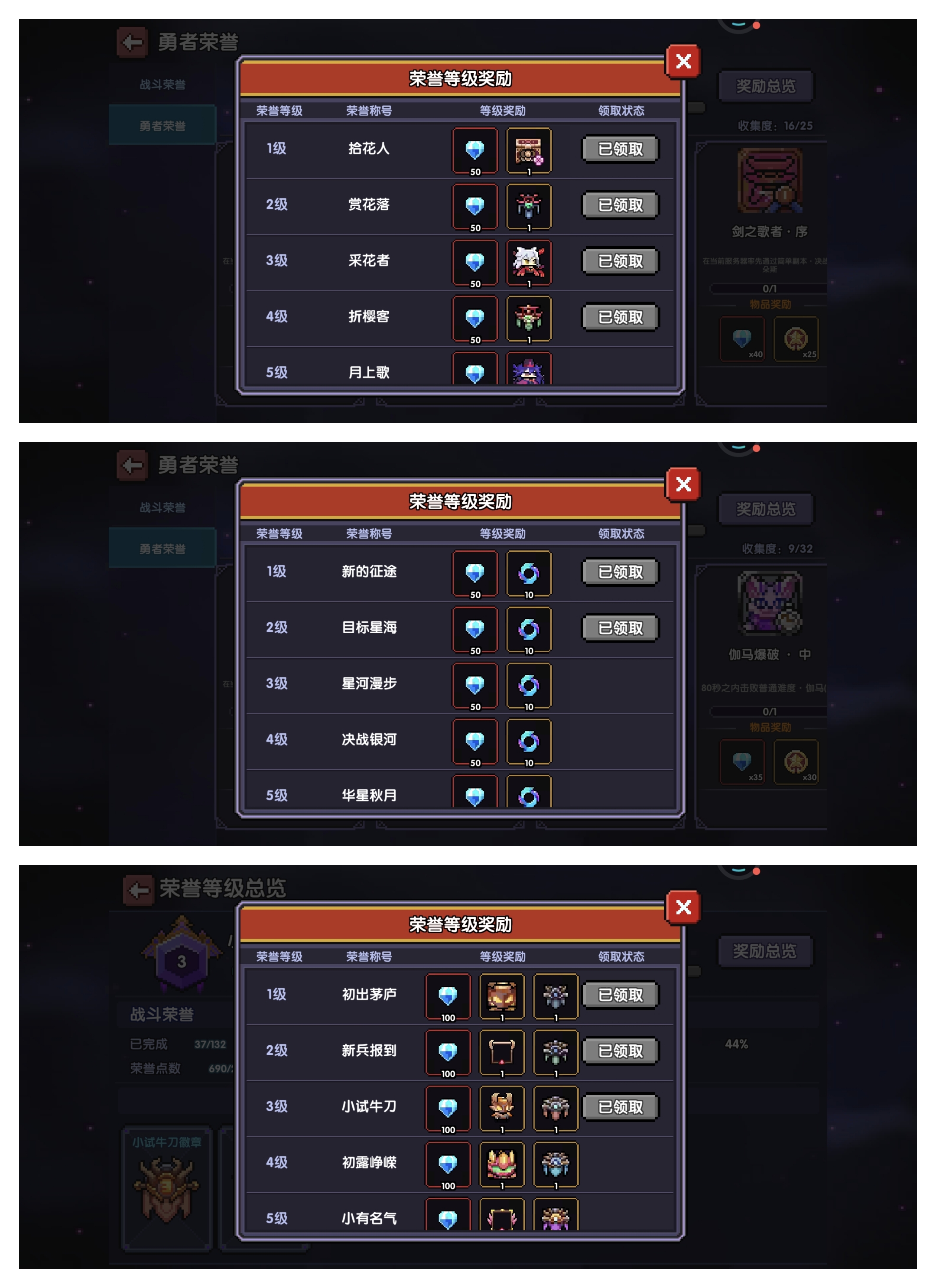 3.4在平日,我们可以不消耗水晶,多次通关各个难度的团本来达成荣誉(图8),达成相应荣誉等级会有奖励哦。(图9)