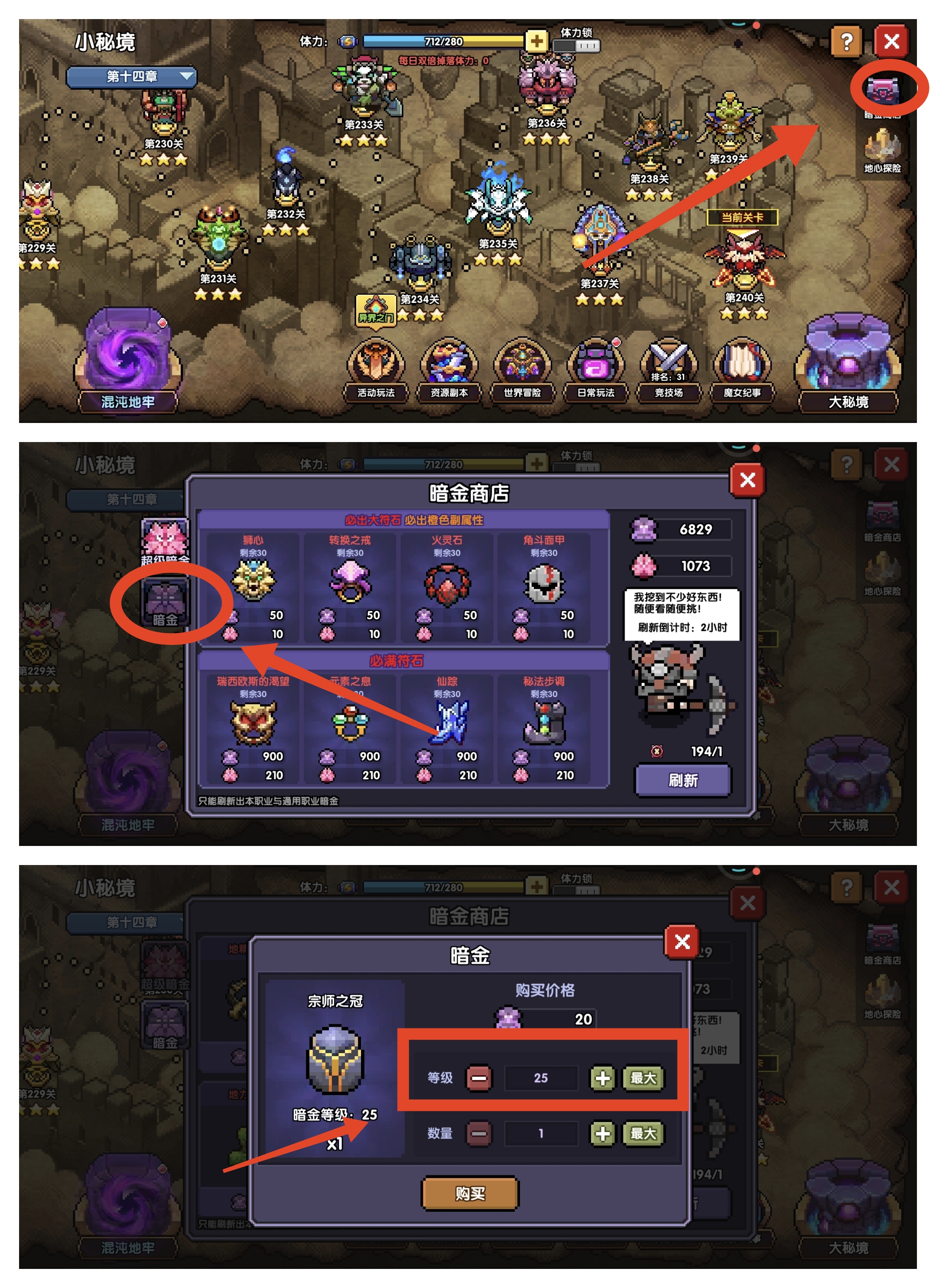 ①装备4孔水系(同色)装备,4孔水系装备怎么能快速获取呢?我们可以点回去看看,在开始冒险-暗金商店-暗金-选择想要的防具-调整等级至25级(图5)可以兑换出来,而兑换材料在团本商店可以买到。