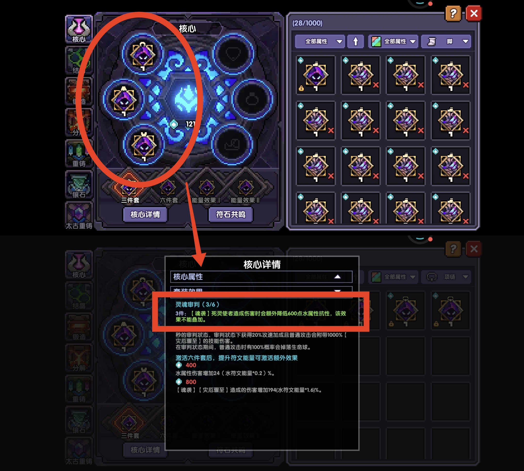 2、在符文系统开启后,我们就有了一个可以有完整BD的新玩法,即围绕符文系统给的强大加成,配合武器、技能、魂珠结合一起就是一个完整的BD了。