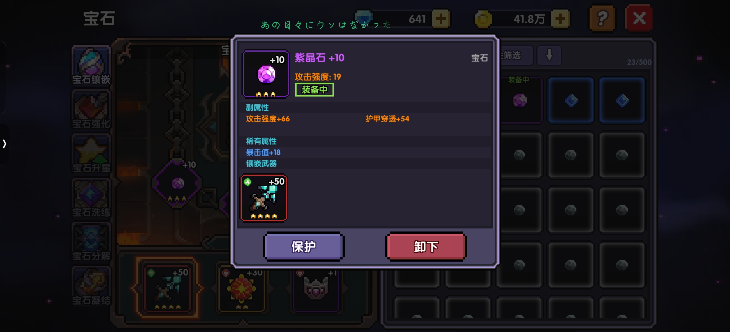 当然我们在20-50层小秘境会解锁另一个重要系统(宝石系统) 在前100层宝石纯纯个人推荐紫橙宝石即可纯纯毕竟没米,就是一个0氪党所以选择的是紫宝石用来过度,有条件的勇者们可以选择橙宝石 过度宝石稀有属性选择[暴击]以及[伤害增幅]即可,暴击在后面会极度溢出,所以我们优先选择[伤害增幅]