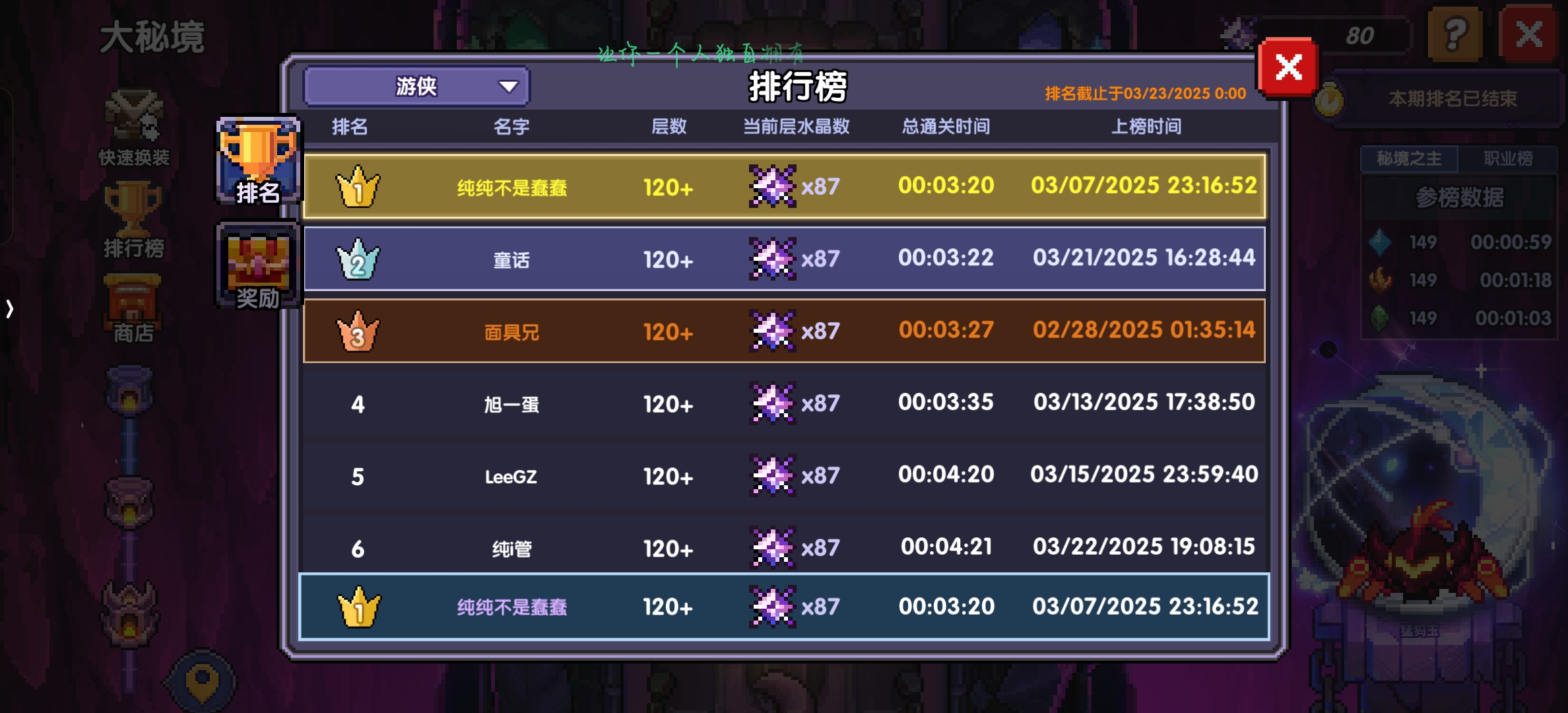 以上就是纯纯在小秘境20-50层做的所有事情,该流程走下来包括推关花了大概2小时