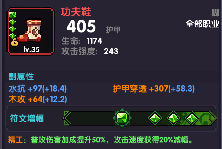特殊技巧2:可以使用功夫鞋,来更方便快捷的查询满层青忍傀后面板攻速是否达标,俩者均为20%攻速减幅。