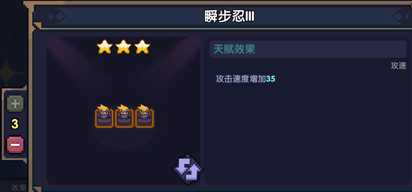 如图所示,朴实无华的数值,不过多介绍(顺便一提,隔壁游侠2个格子35攻速)