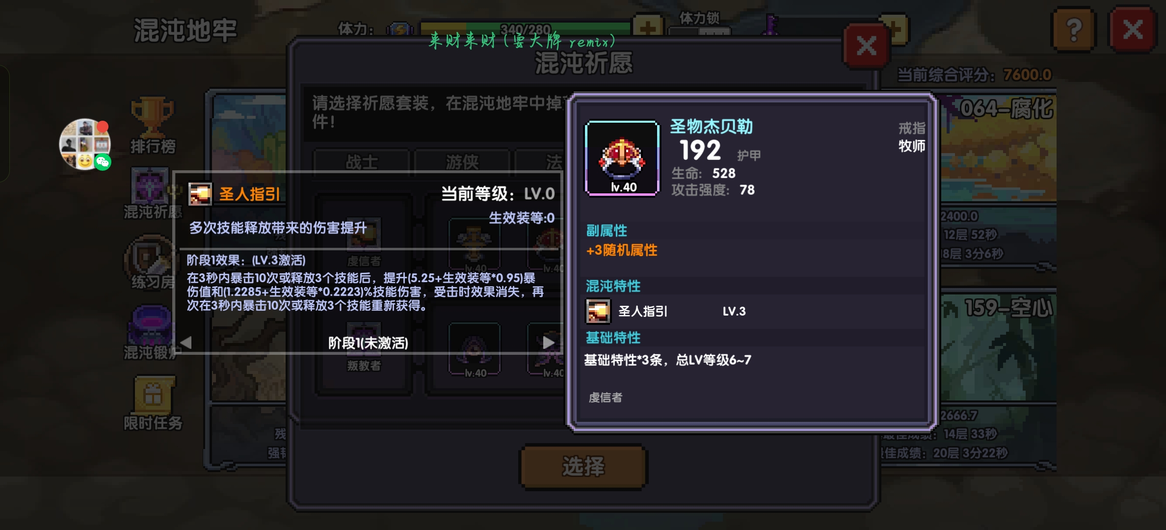 牧师职业套核心副词条:救援-改 如图: