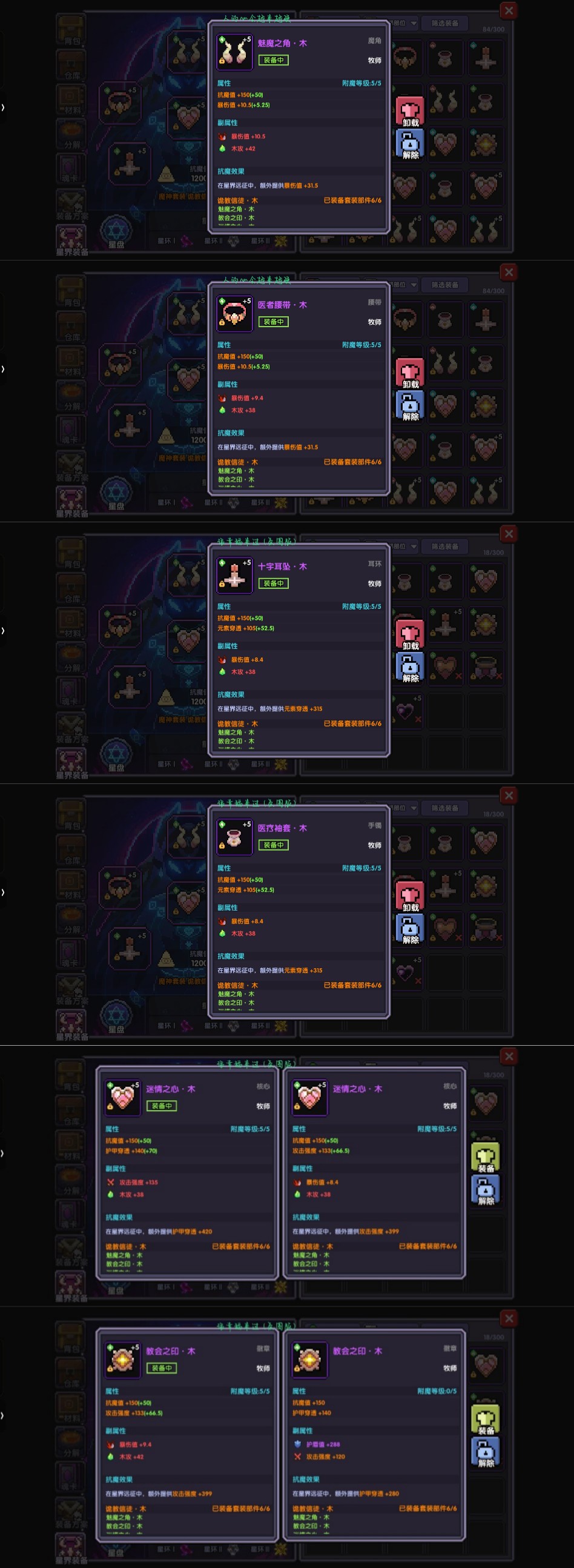 该组武器虽然和牧师适配度不算很高但是比起英魂的火水系列那组的实战效果更好(亲测),因为在这个游戏里面有很多面板到了一定数值就会被稀释,所以不需要特意去把一个属性叠的很高,要均衡去提升