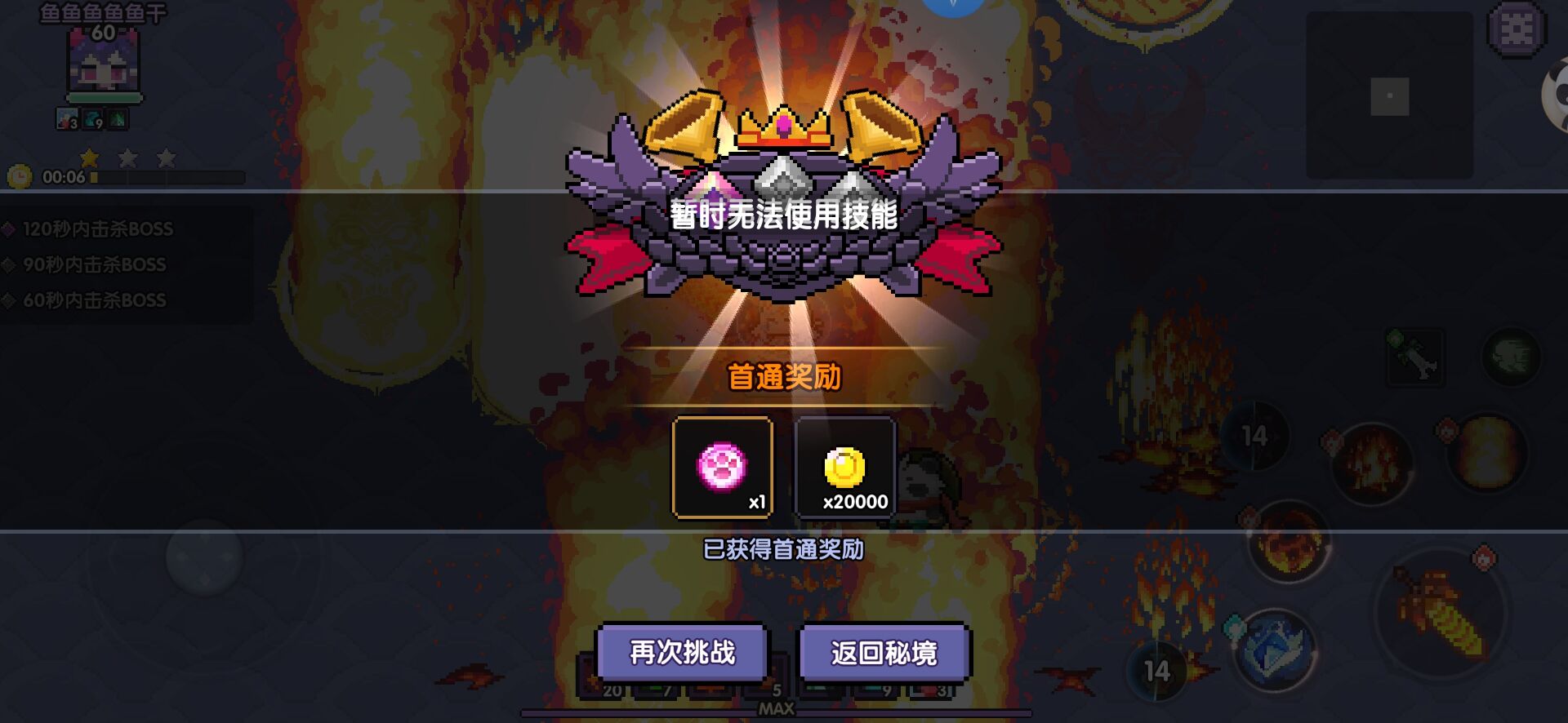 值得一提的是,之前版本的速杀关能够通过进图秒死,小几率快速过关,目前疑似被修复。