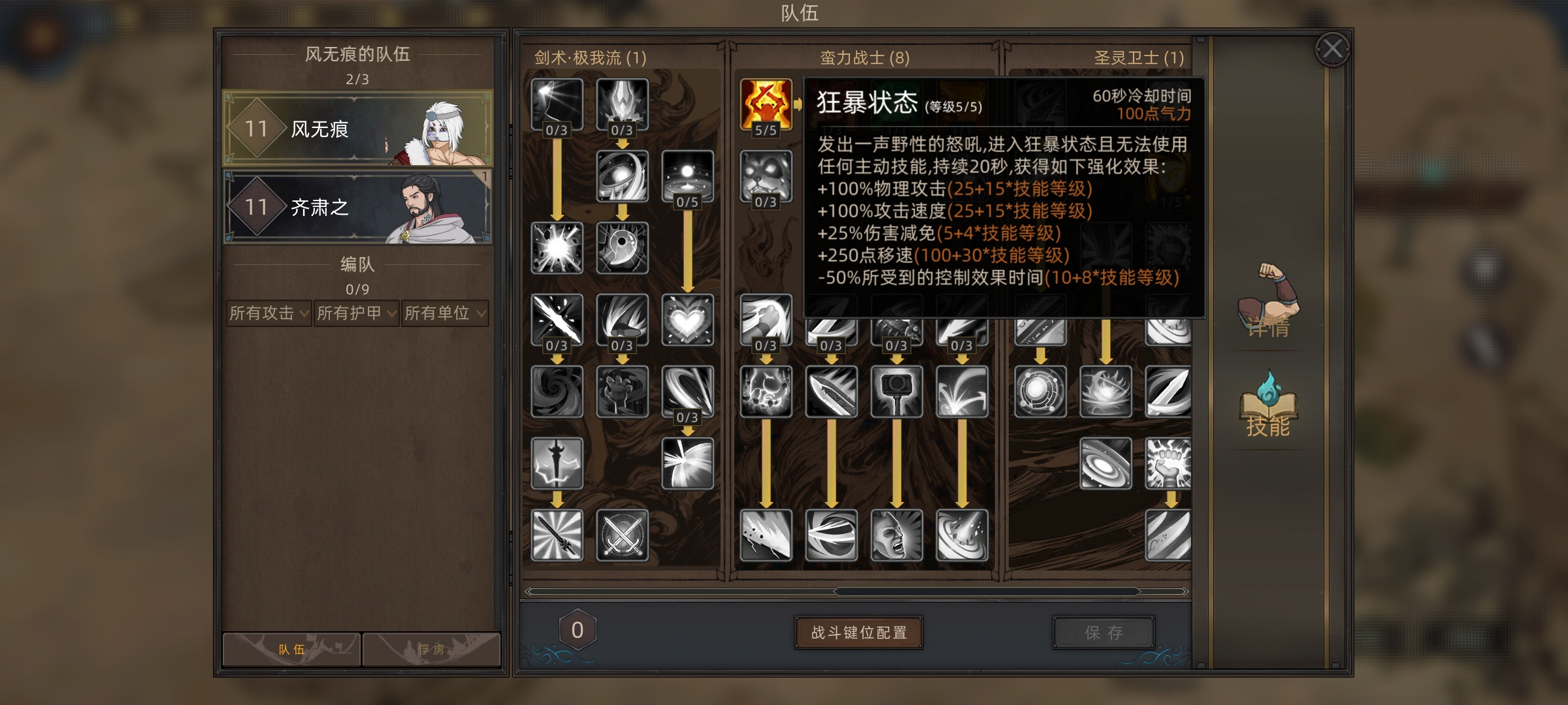 这里5点给了狂暴状态拉满,100%攻击和攻速,还有伤害减免。点到右边狂暴状态强化,大概平A十下会触发这个技能旋风效果。