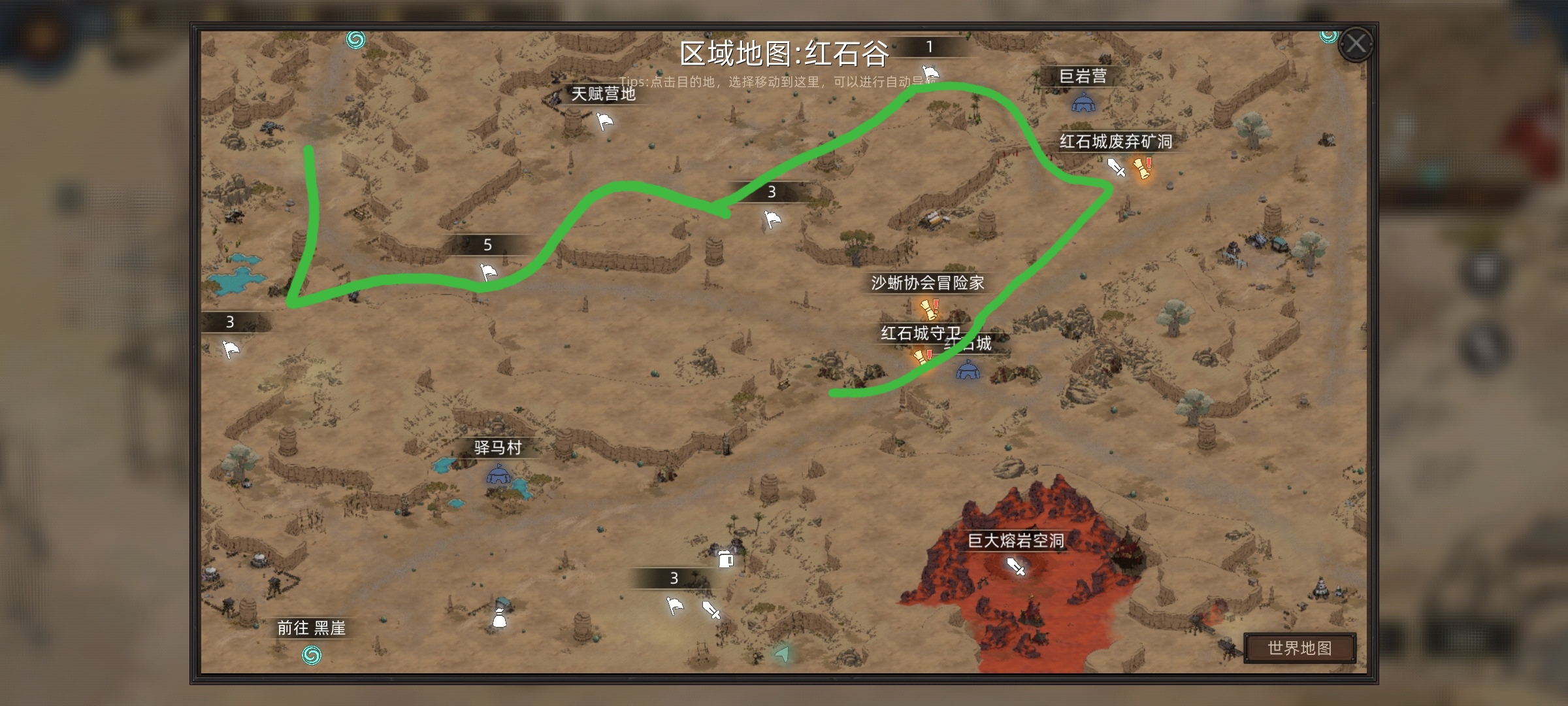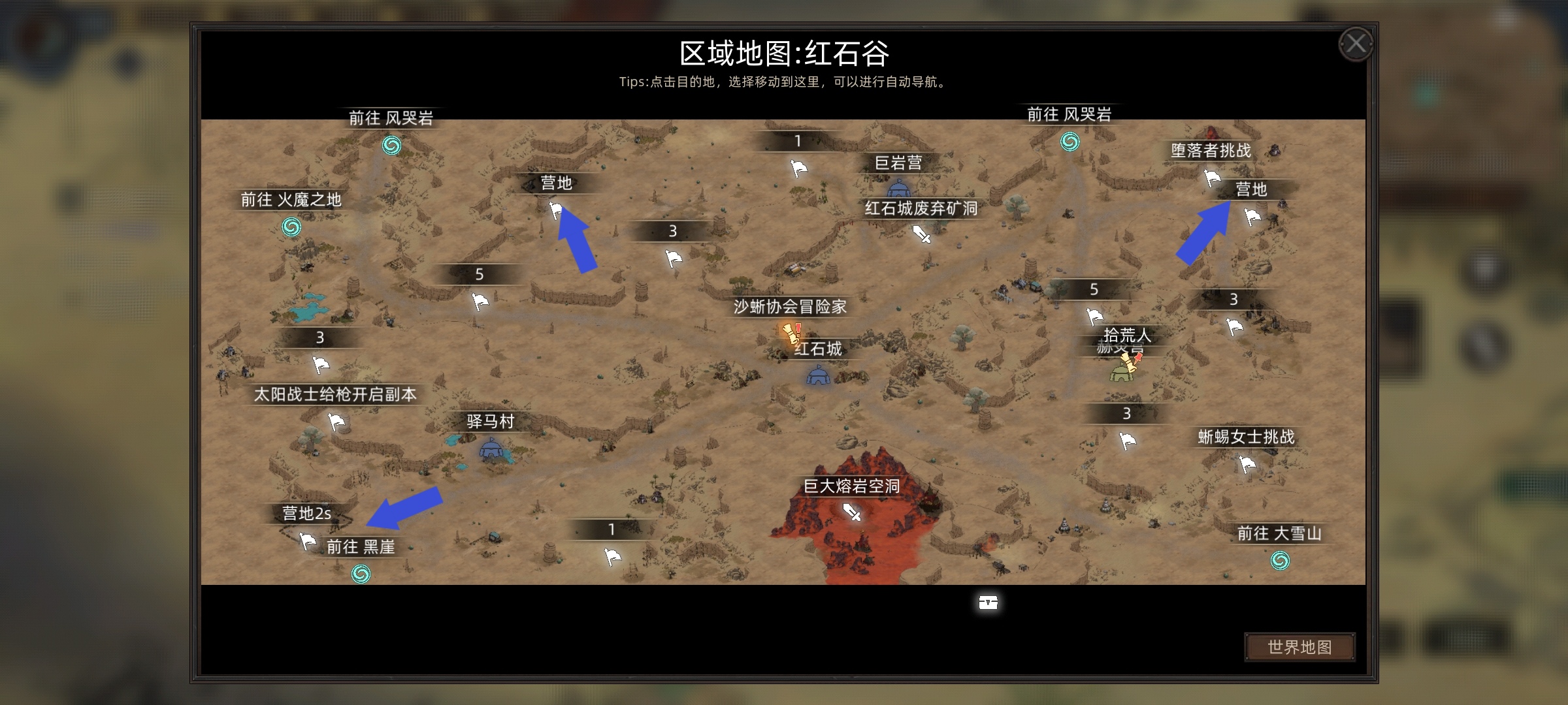 哈哈,运气不错。至此,红石城新人地区探索我们已经全部完成了,红石谷地图上我标记了一些东西可能你们未来打挑战成就时会用到。