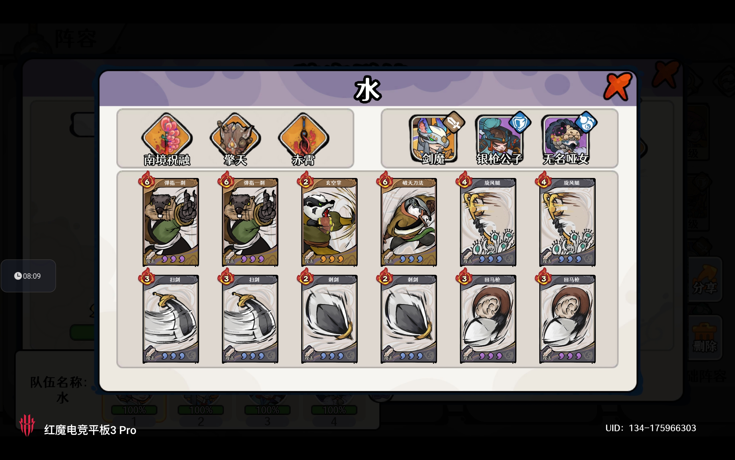 双水系:剑魔+银枪公子(装备同狮子)+无名哑女(装备同兔子)